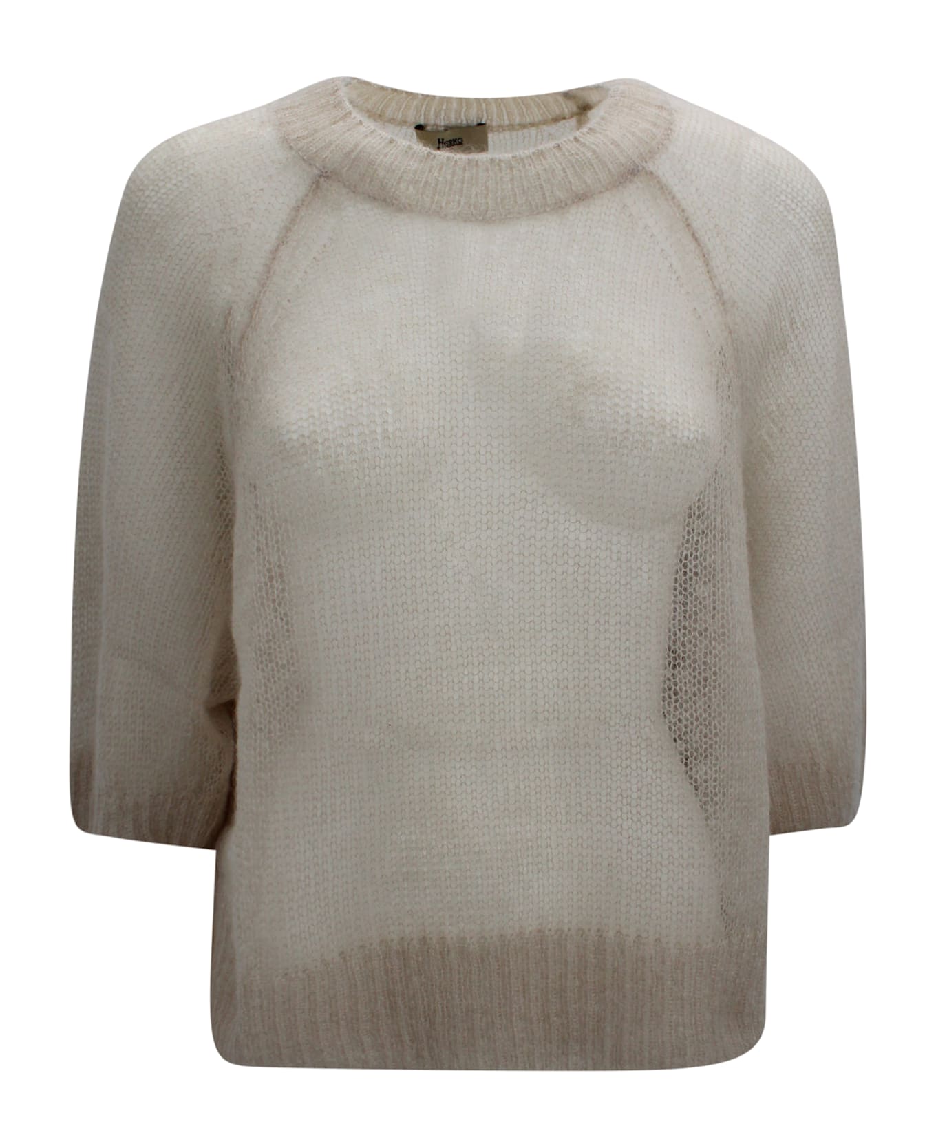 Sweater crafted in a knit fabric in an elegant taupe grey shade, featuring a crew neckline and long sleeves. Finished with ribbed cuffs and hem and enhanced by a Herno logo plaque for a clean, contemporary look.
