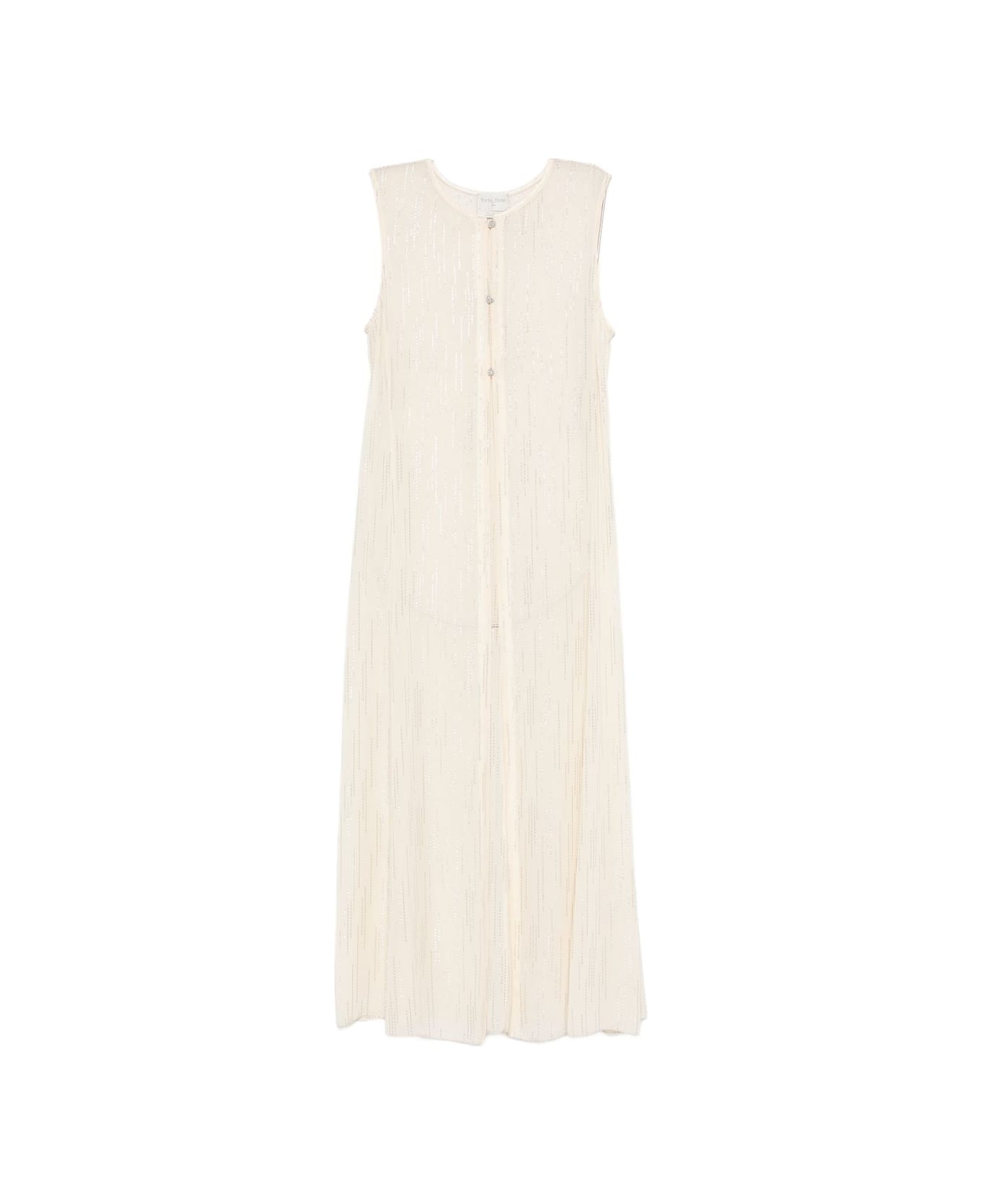 crystal sleeveless button fastening round neck long length relaxed fit