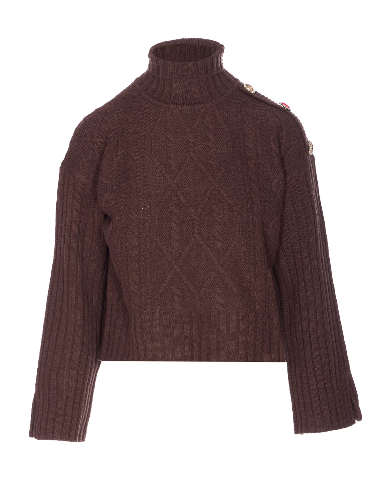 Liu Jo brown sweater, crewneck, long sleeves, application crystals details on side, knitted Composition: 80% Wool, 20% Polyamide