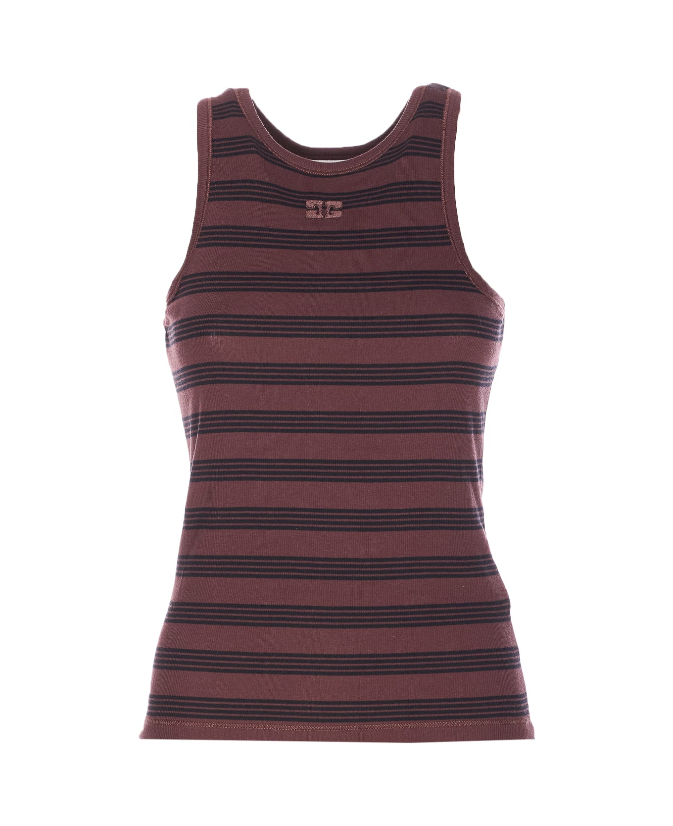 Ganni brown and black tank top, crewneck, embroidered logo on the front, striped Composition: 95% Organic Cotton, 5% Elastane