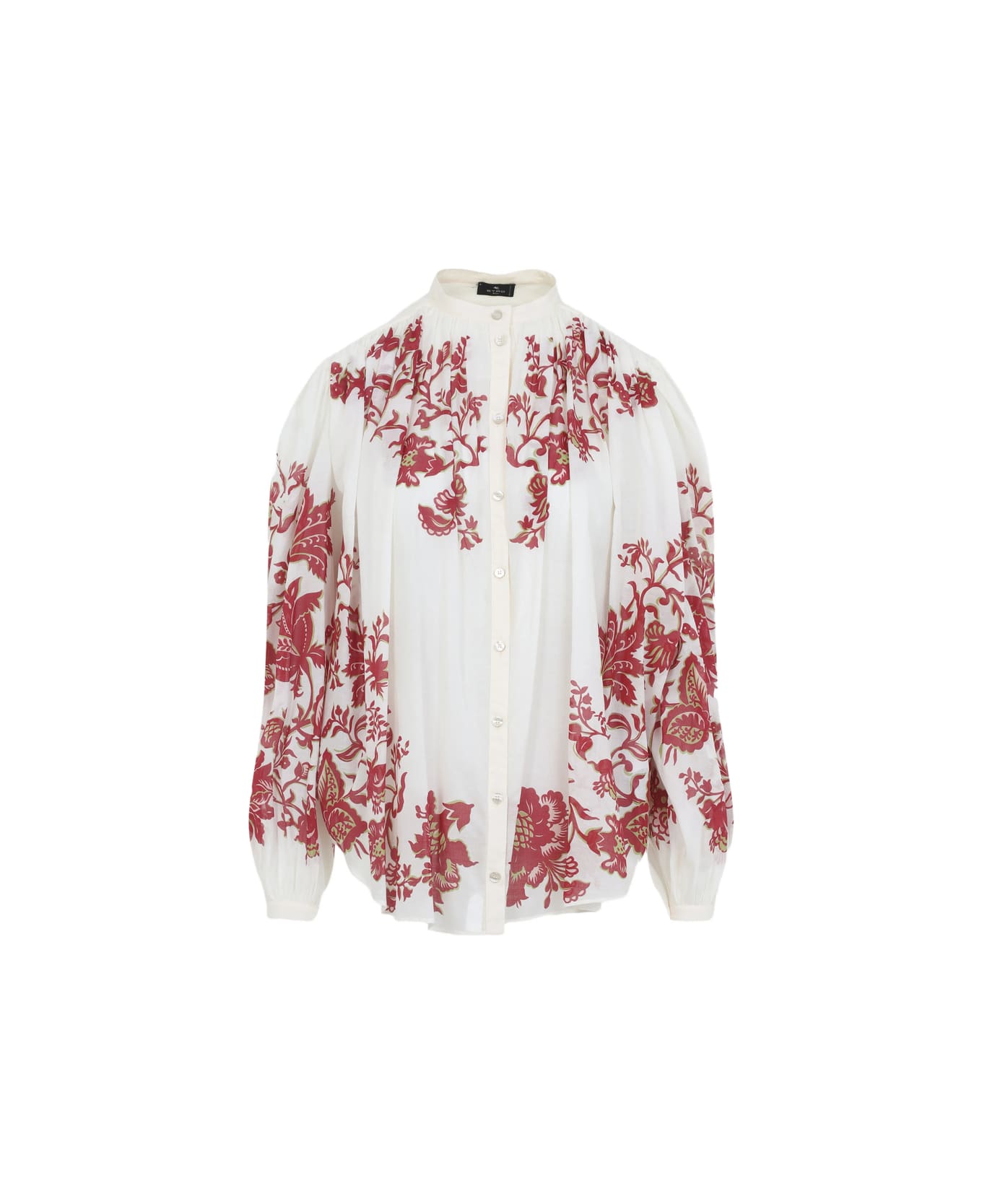 white and red floral print button fastening high neck long sleeves
