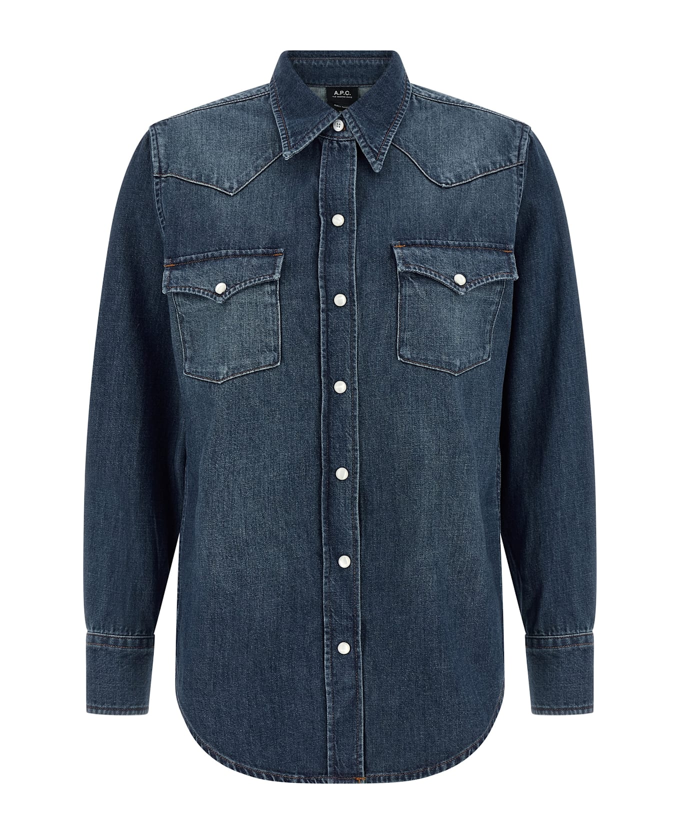 'Western' shirt in delavé cotton denim with contrast stitching, pointed collar, front snap button closure, pockets, long cuffed sleeves, rounded hem. SUSTAINABLE: This product is made with organic cotton.
