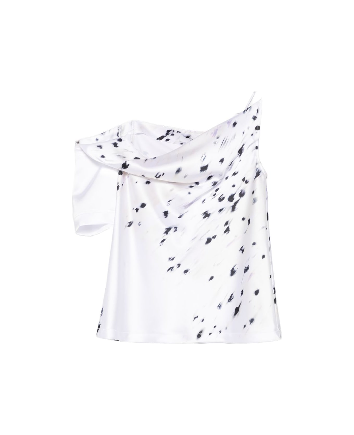 white abstract print draped detailing one shoulder sleeveless spaghetti straps