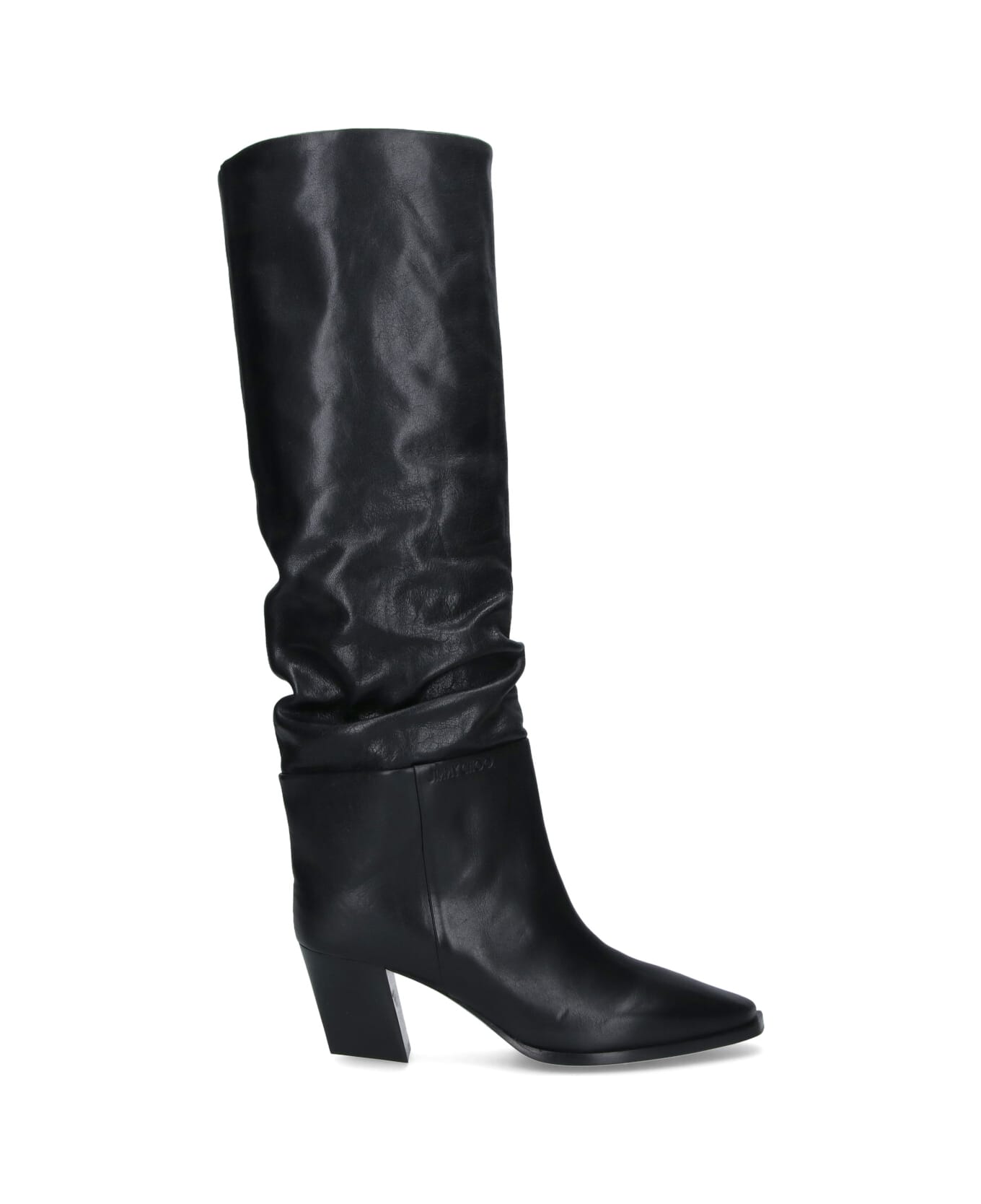 Jimmy Choo 'Hart' black calf leather boots with pointed toe, square heel, leather sole. Composition: 100% Calf Leather