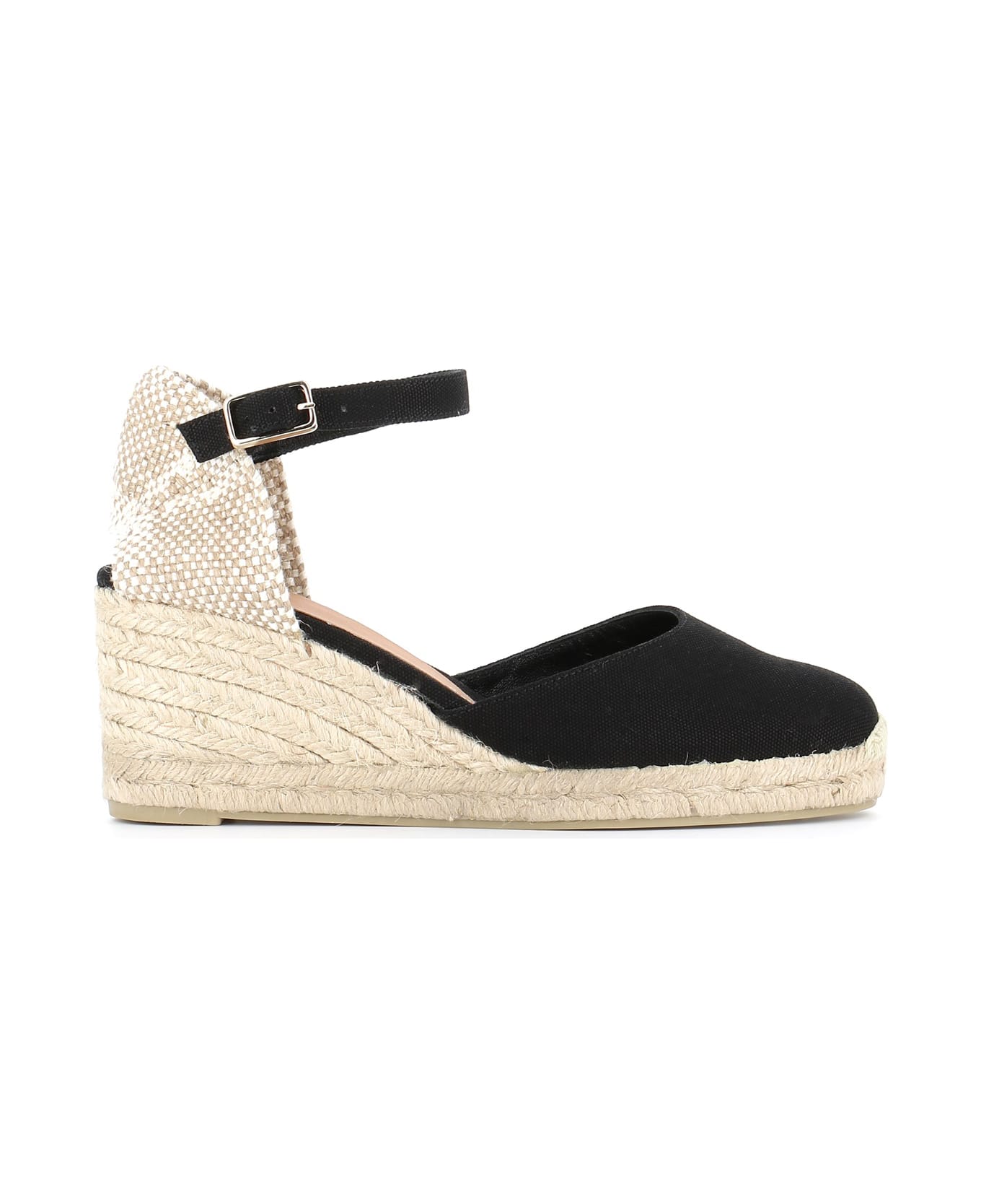Black canvas women's Espadrillas by Castaner, featuring to jute sole, by the heel of jute and cotton thread and ankle strap with buckle. Rubber sole. Heel: 7 cm Composition: Cotone
