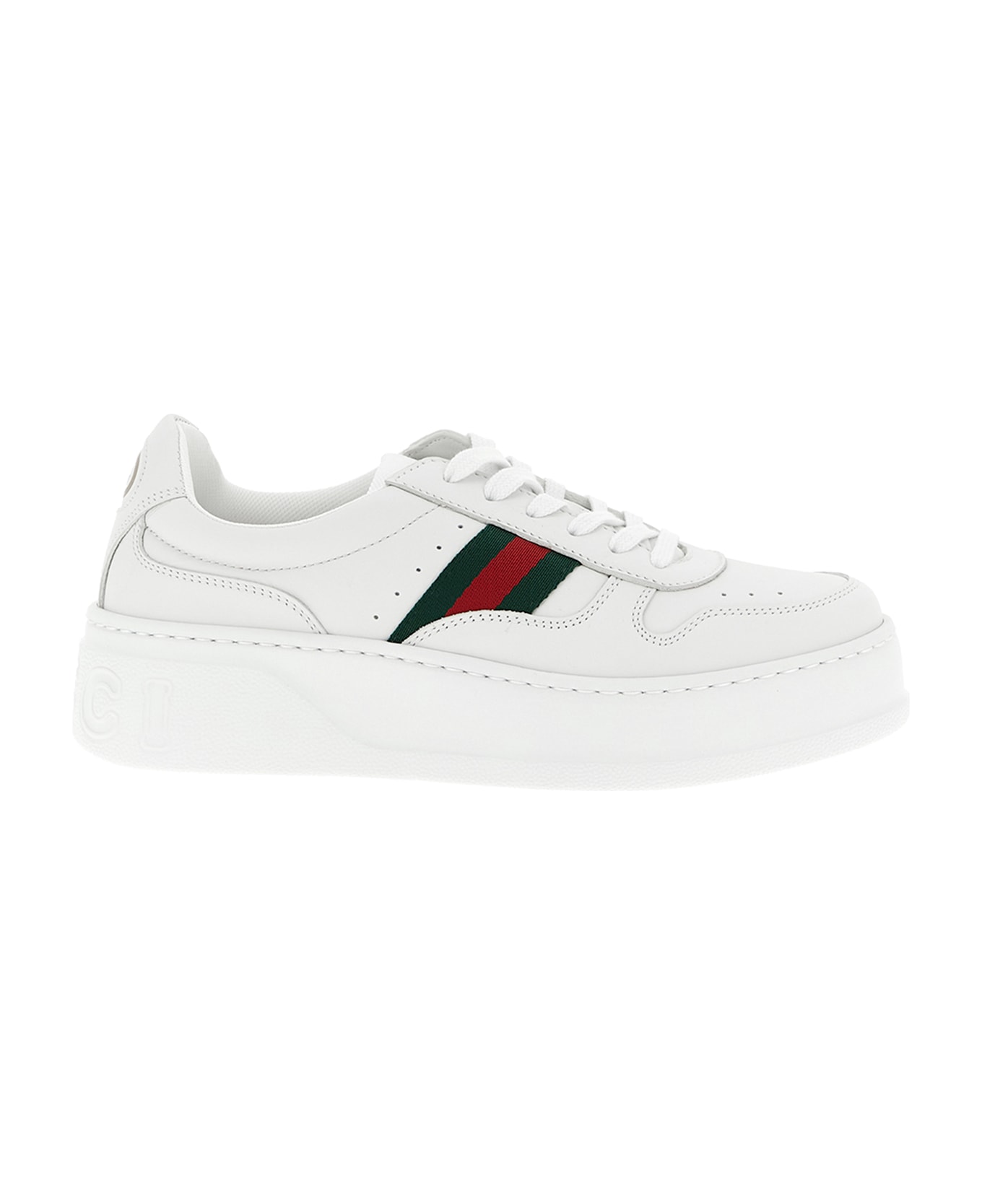 Leather sneakers, fabric Web ribbon on the side, embossed GG logo on the heel, lace-up closure, oversized rubber sole with engraved logo lettering. Composition: 100% calfskin leather (Bos Taurus)