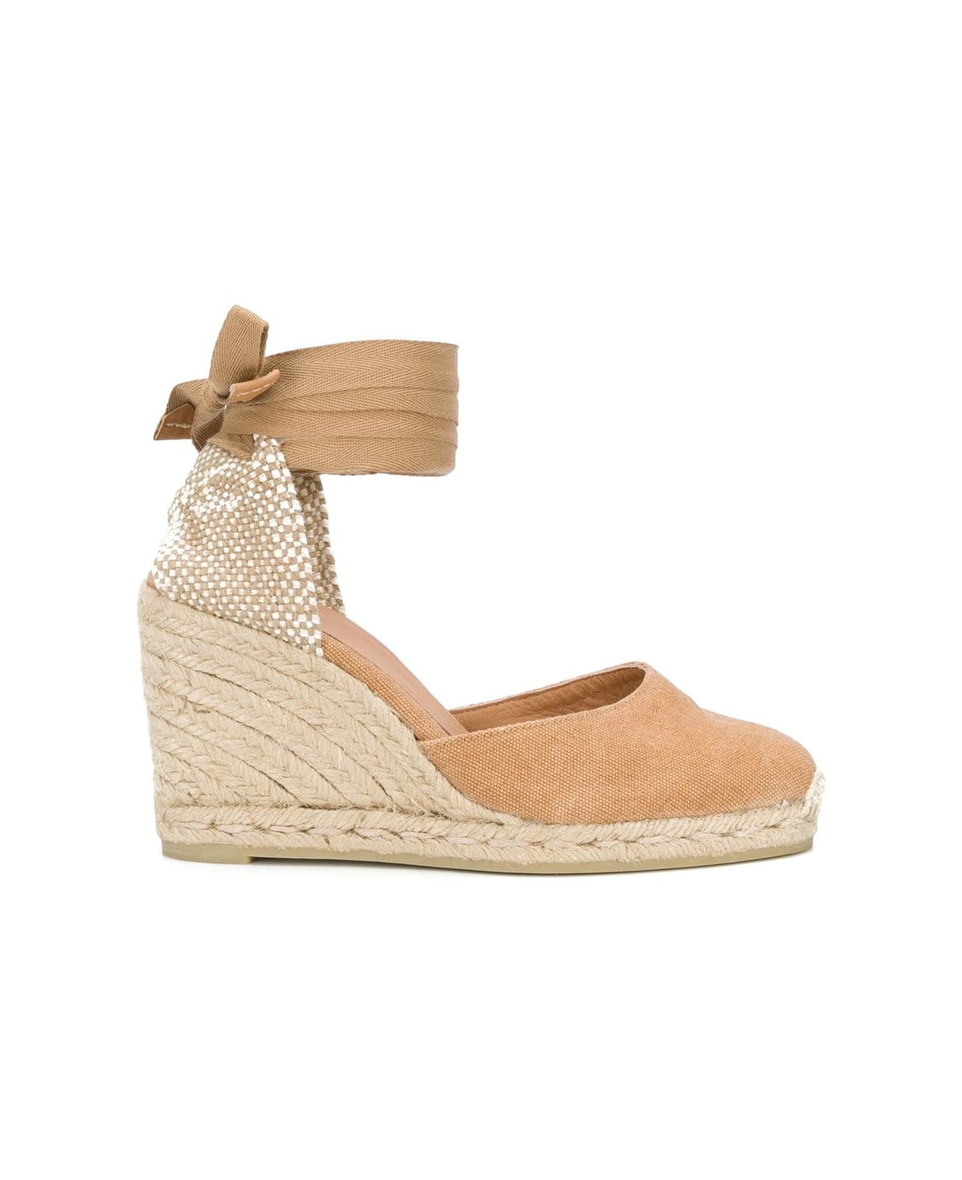 Carina model wedge espadrille by Castaner made of beige cotton canvas and characterized by round toe, leather insole, natural jute wedge with thin rubber sole and ankle closure with woven fabric strap on the heel. Total height: 9 cm: wedge height 8 cm and platform height 1 cm. Fit: buy your usual size.