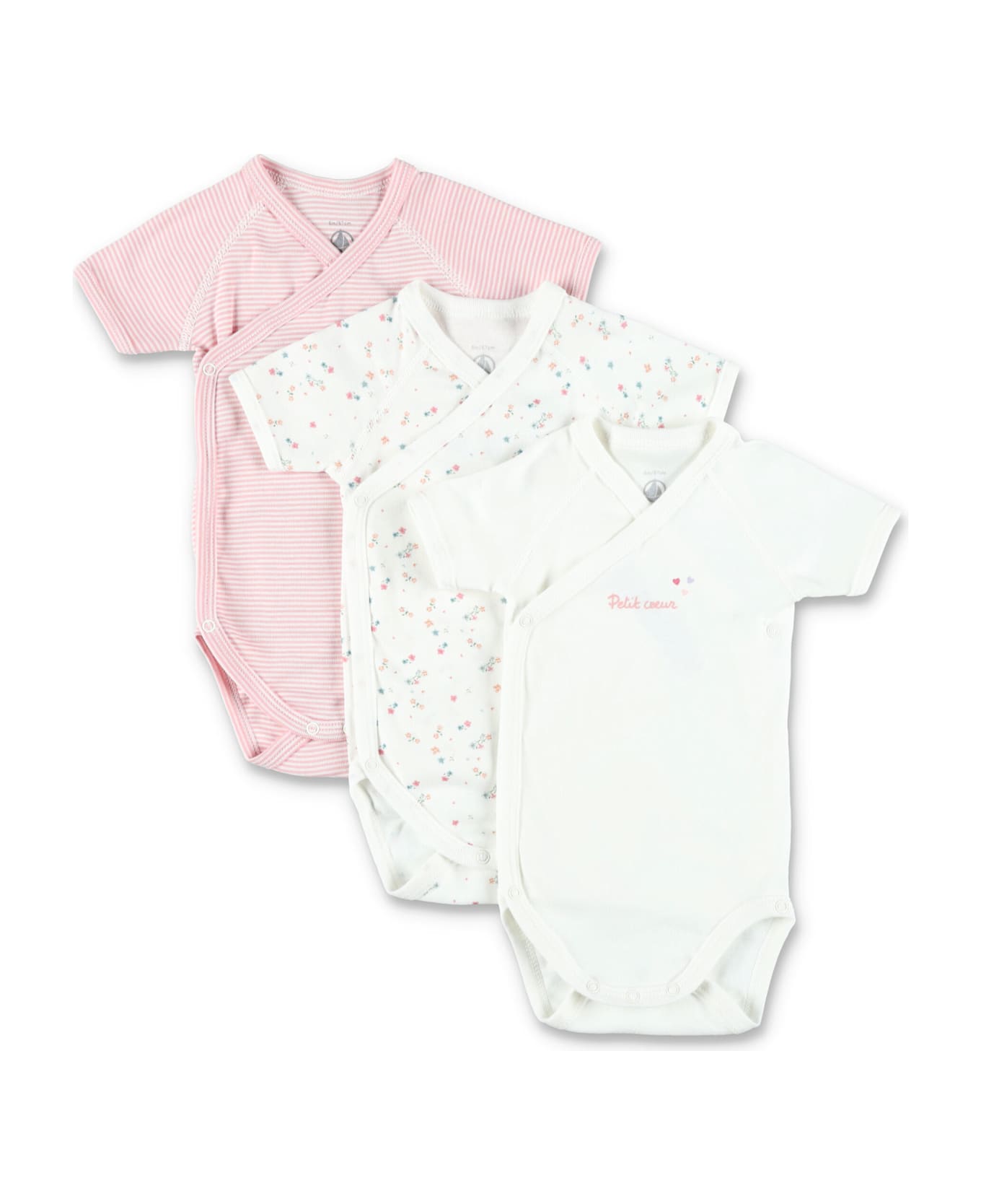 Wrapover Bodies 3-pack By Petit Bateau. Featuring: Cotton Rib-knit Wrapover Snap Button Closure Short Sleeves Ribbed Edges 3 Different Prints