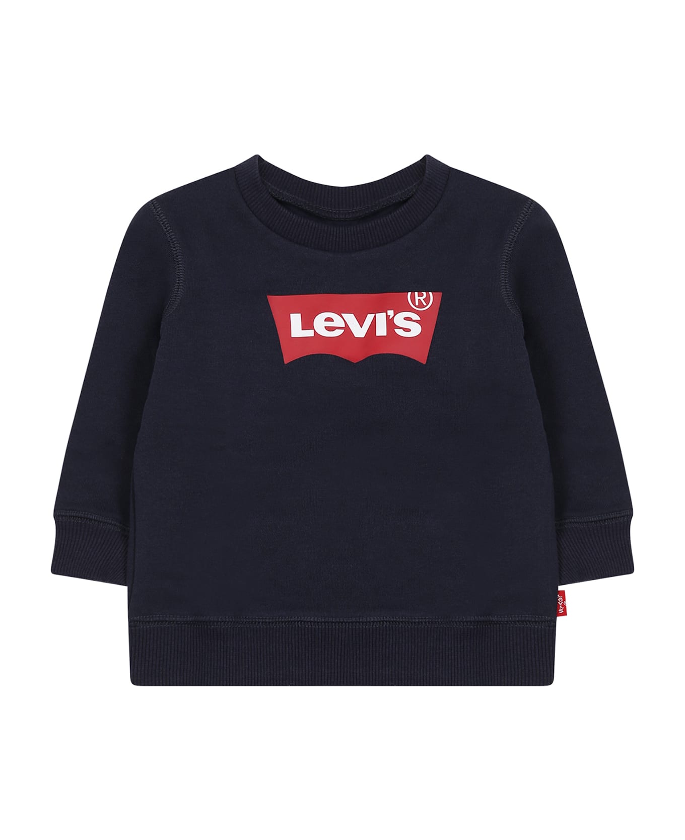 Blue sweatshirt in cotton fleece, hood, long sleeves with elastic cuffs, elastic hem, ribbed crew-neck, hem and cuff. It is embellished with a print of the logo.