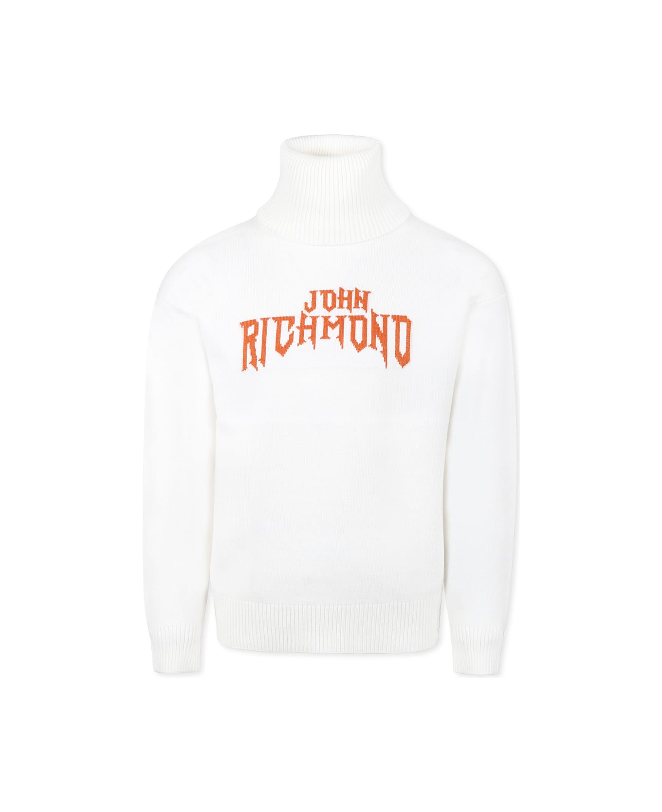 White turtleneck with long sleeves and high neck. It is embellished with front logo and logo patch on the back.