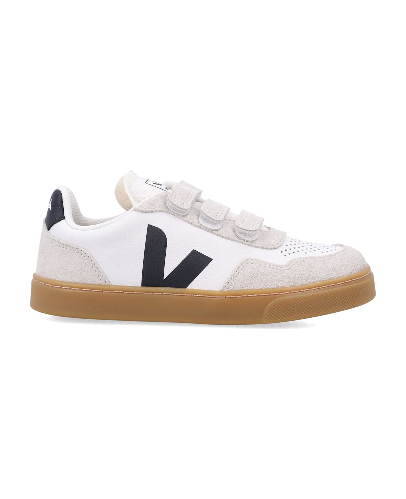 Elevate Your Everyday Style With The Veja V-90 Sneakers In White Black Natural, A Refined Blend Of Eco-conscious Materials And Urban Attitude. Made In Brazil Using Organic Traced Leather And Suede, This Model Combines Ethical Production With Everyday Comfort. The Neutral Palette And Modern Silhouette Make It A Versatile Essential For Conscious Wardrobes. Upper In Organic Traced Leather Panels In Suede And O. t. Leather Insole Made From Bio-based Eva And Organic Cotton Outsole With Amazonian Rubber And Mineral Silica Lining In 100% Recycled Polyester Suede Velcro Straps Exposed Foam Tongue With Logo