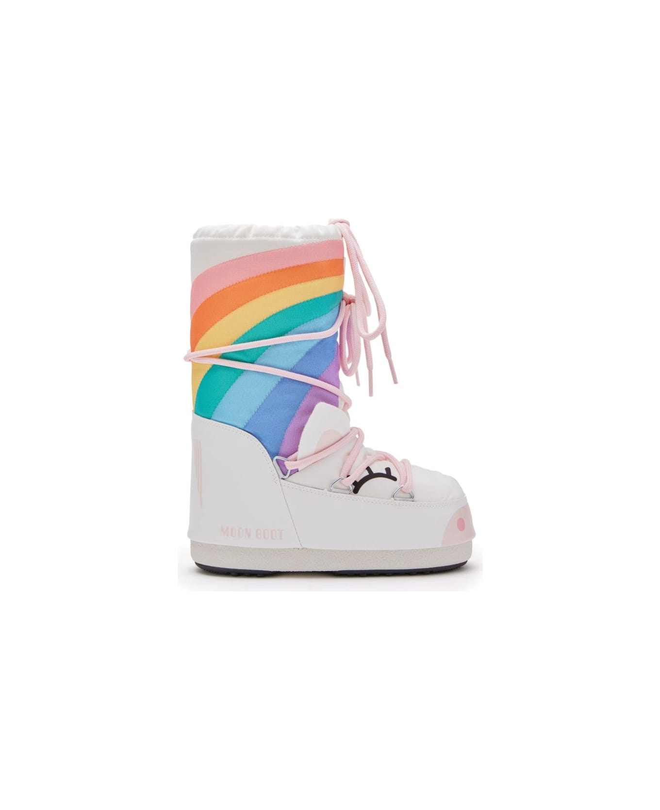Features White/multicolor Waterproof Metal eyelet detail Rainbow stripe detail Unicorn motif Side logo print Logo on the heel Round toe Lace-up front closure Drawstring closure Logoed insole Wedge heel Composition Outer: 70% polyester, 30% PVC