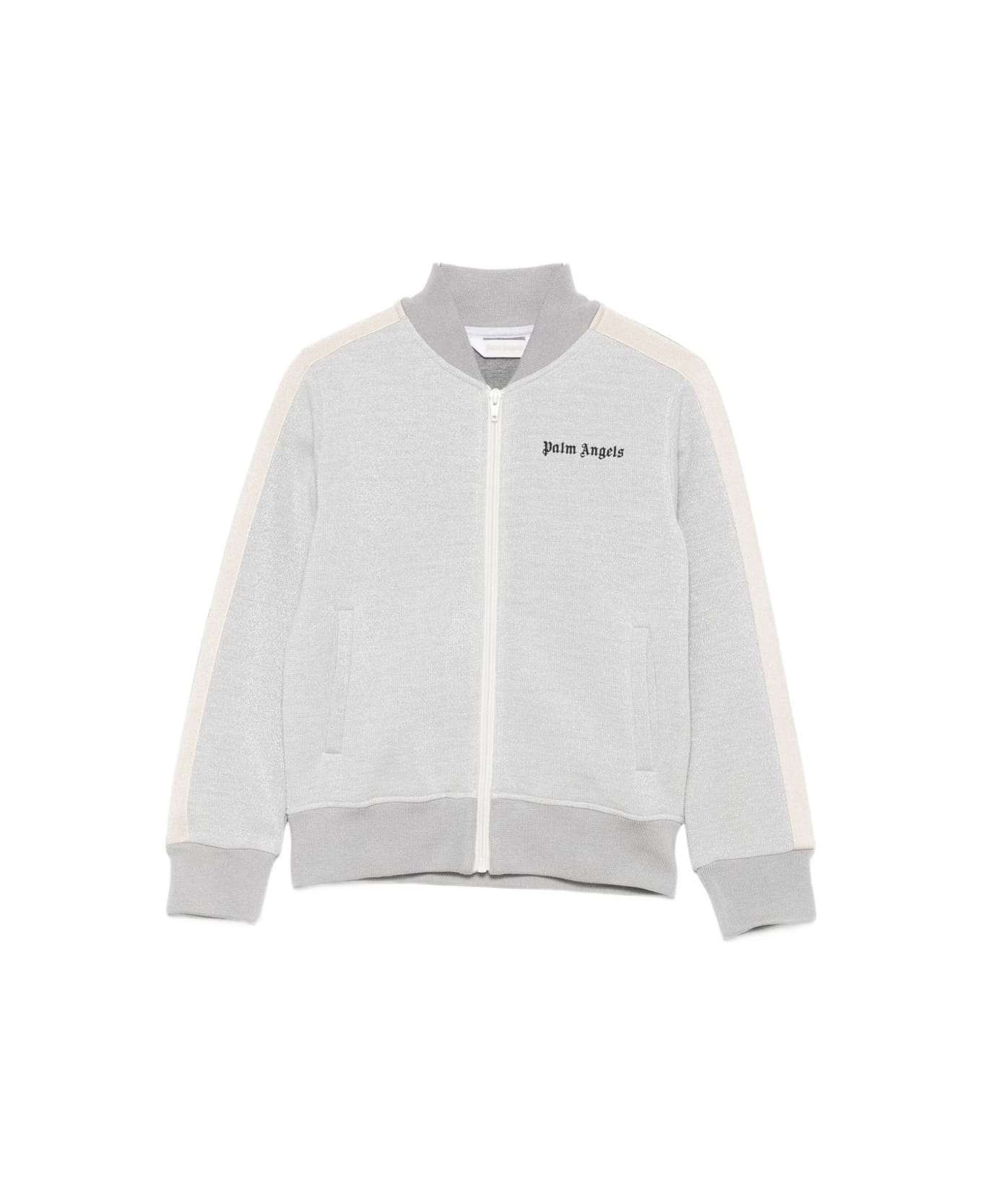 Palm Angels Kids Sporty full-zip sweater with logo print, long sleeves, gray side stripe, elastic waistband, side pockets Composition Lining: 100% cotton 68% polyester, 32% polyurethane