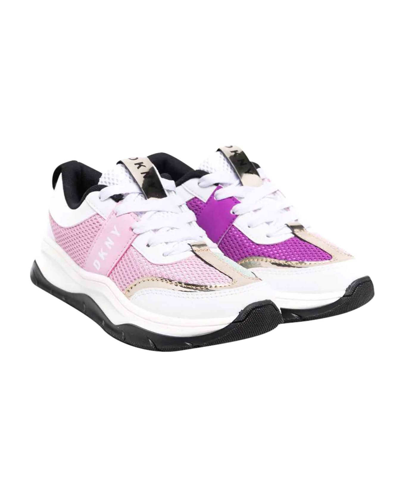 White shoes teen unisex. Design with color block panels, round toe, side logo print, logo application on the tongue, tongue on the heel and front closure with laces. 100% rubber sole