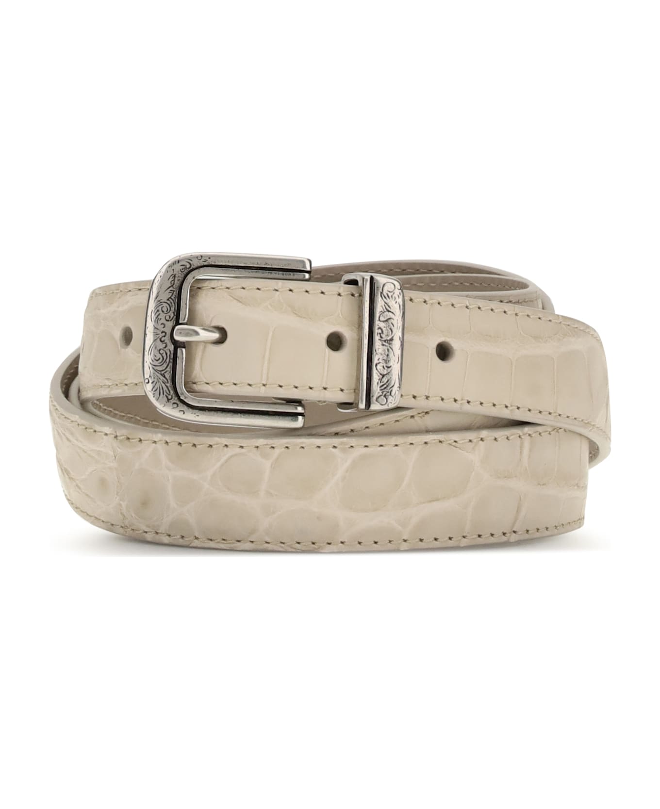 Alligator leather belt by brunello cucinelli is a luxury accessory with timeless style. featuring fine craftsmanship, it is complemented by a silver-colored decorated buckle that adds a distinctive touch. the adjustable design ensures a tailored fit, combining elegance and functionality. Composition: 100% % Alligator