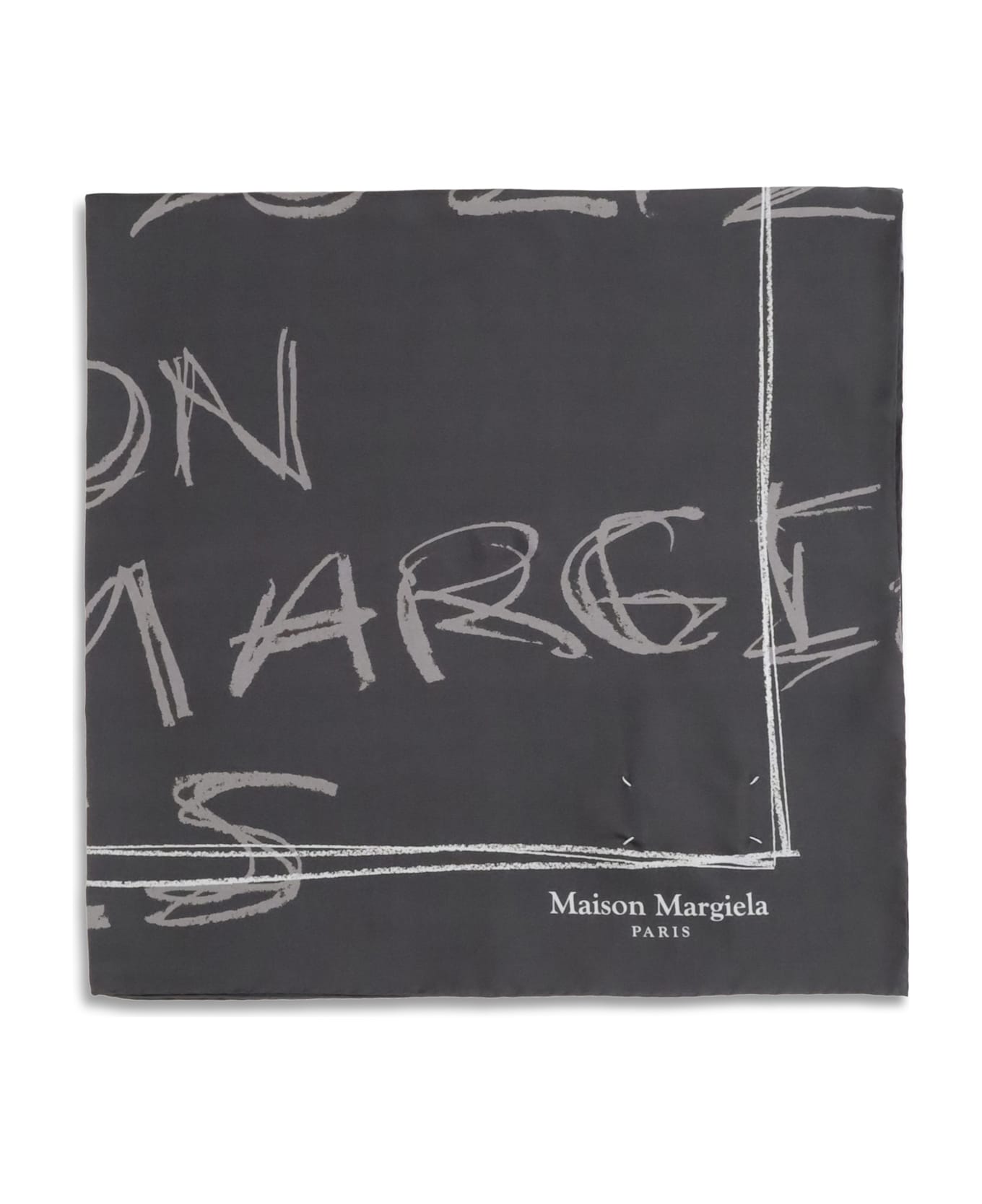The numerical silk scarf by margiela combines elegance and creativity. the maison's numerical motif, reinterpreted in a hand-drawn and "scribbled" version, creates an original texture thanks to the contrasting color of the print. versatile and refined, the accessory can be worn over other garments for a distinctive and contemporary touch.