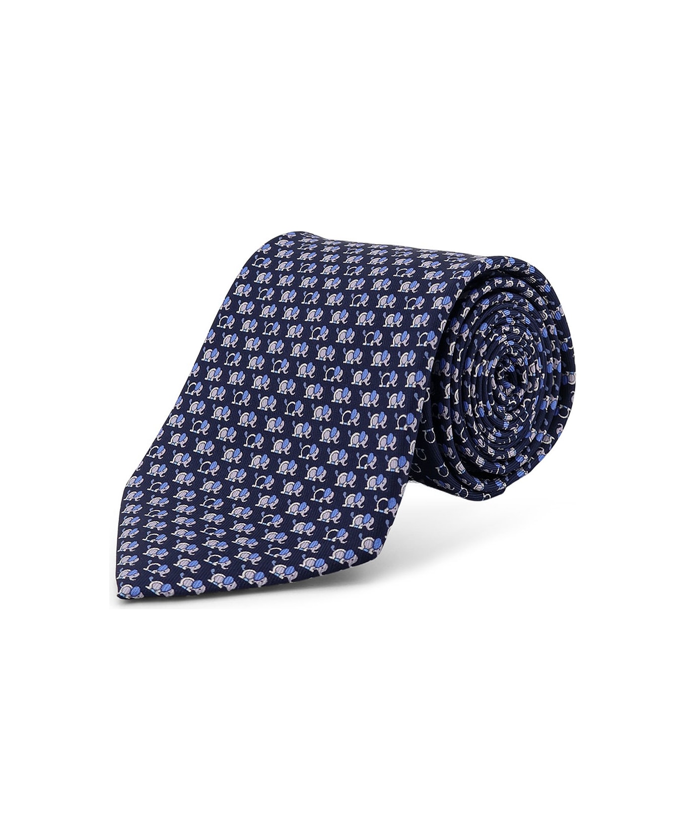 All-over Gancini motif Silk loop Fabric tag with logo Ferragamo detail on the back Lined Made in Italy 100% silk L: 8 cm SKU: 351320788974BLU