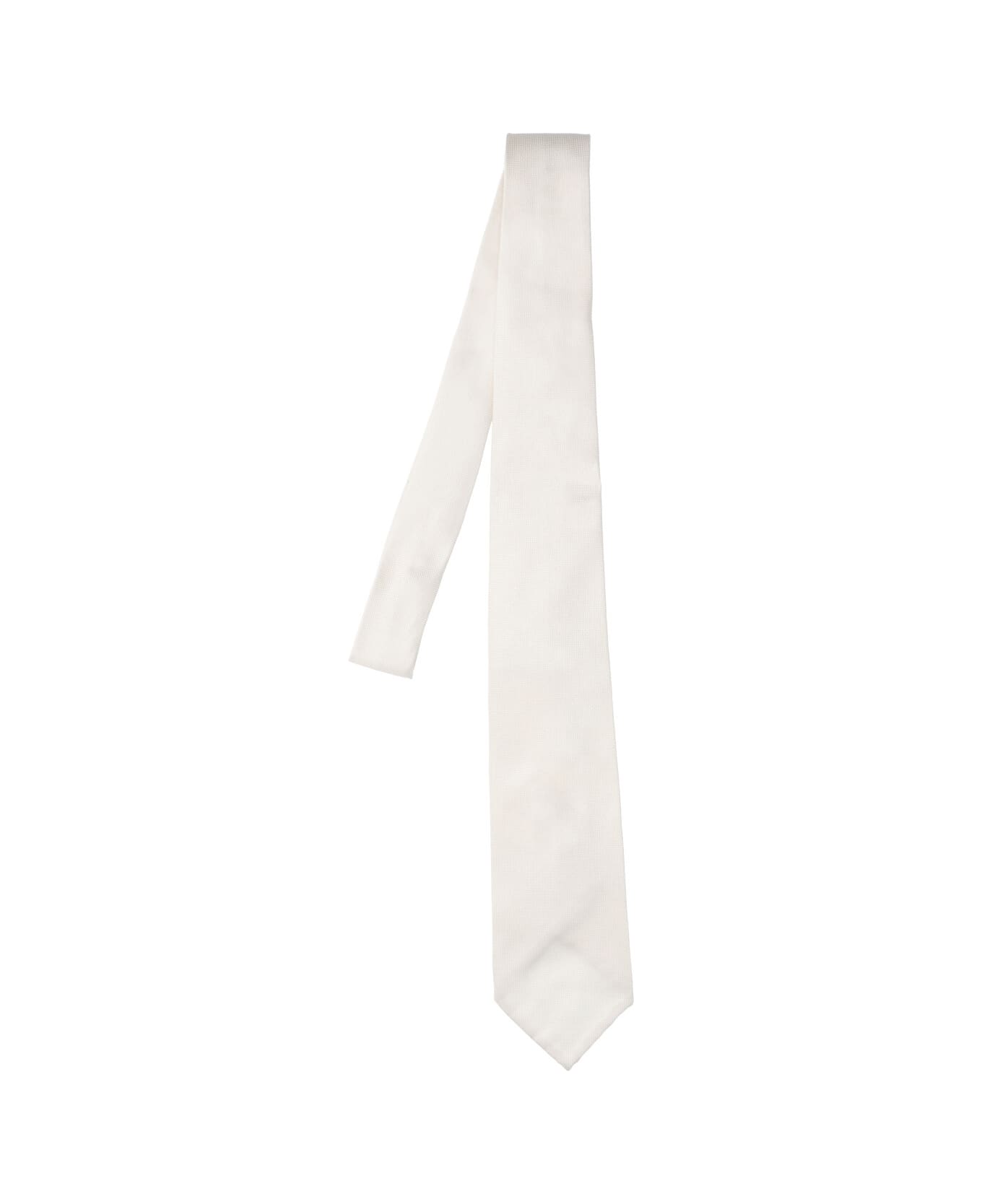 Cesare Attolini white silk tie with contrasting inner logo label, adjustable.