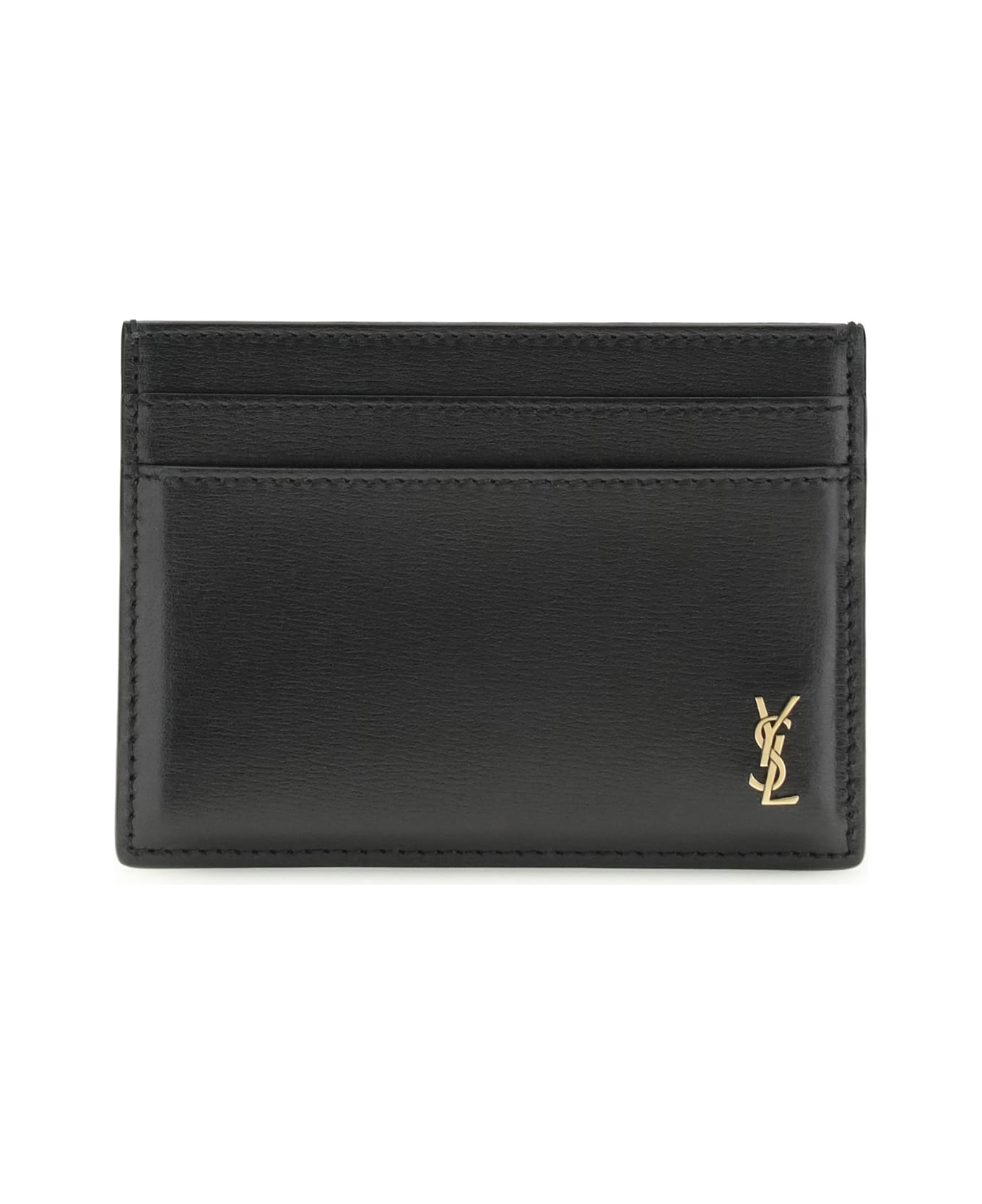 The tiny cassandre card holder by saint laurent is a compact and refined accessory, decorated with metal ysl initials. featuring five card slots and bronzed metal details, it combines functionality and distinctive style in an essential format. Composition: 100% % Calf Leather Bos Taurus