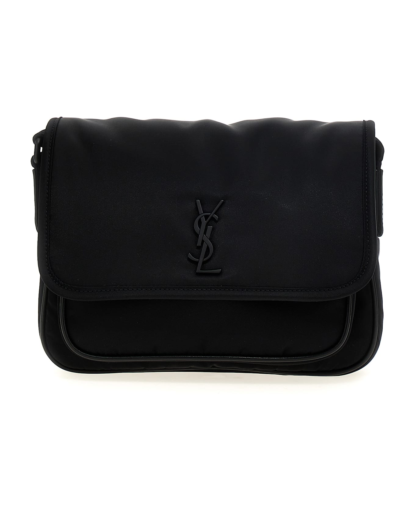 'Messenger Niki' nylon crossbody bag with snap button closure, front metal logo, adjustable shoulder strap. Composition: 90% polyamide, 10% brass