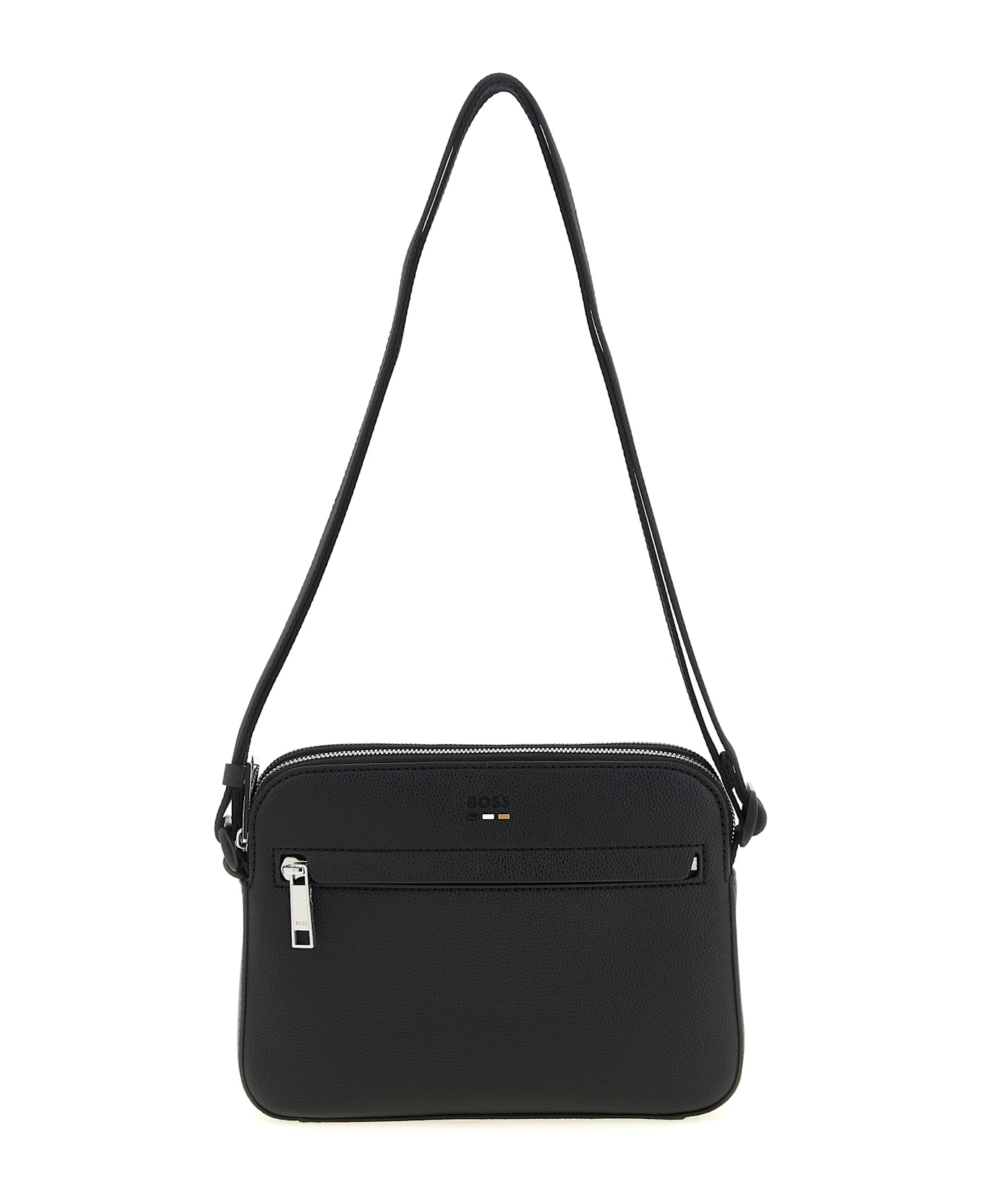 'Ray Double' crossbody bag in hammered leather-effect fabric, embossed logo and front zip pocket, double top zip closure, adjustable fabric shoulder strap. Composition: 70% polyurethane, 30% polyester