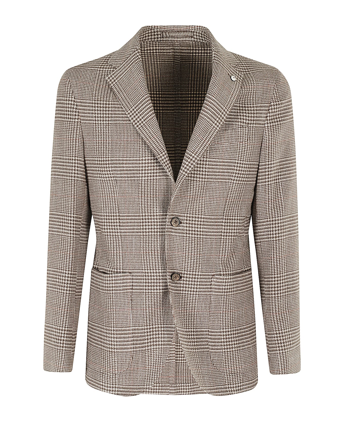 Jacket - L. B. M. - mud color - Prince of Wales pattern - classic lapels - single breasted two button closure - side patch pockets - top breast pocket