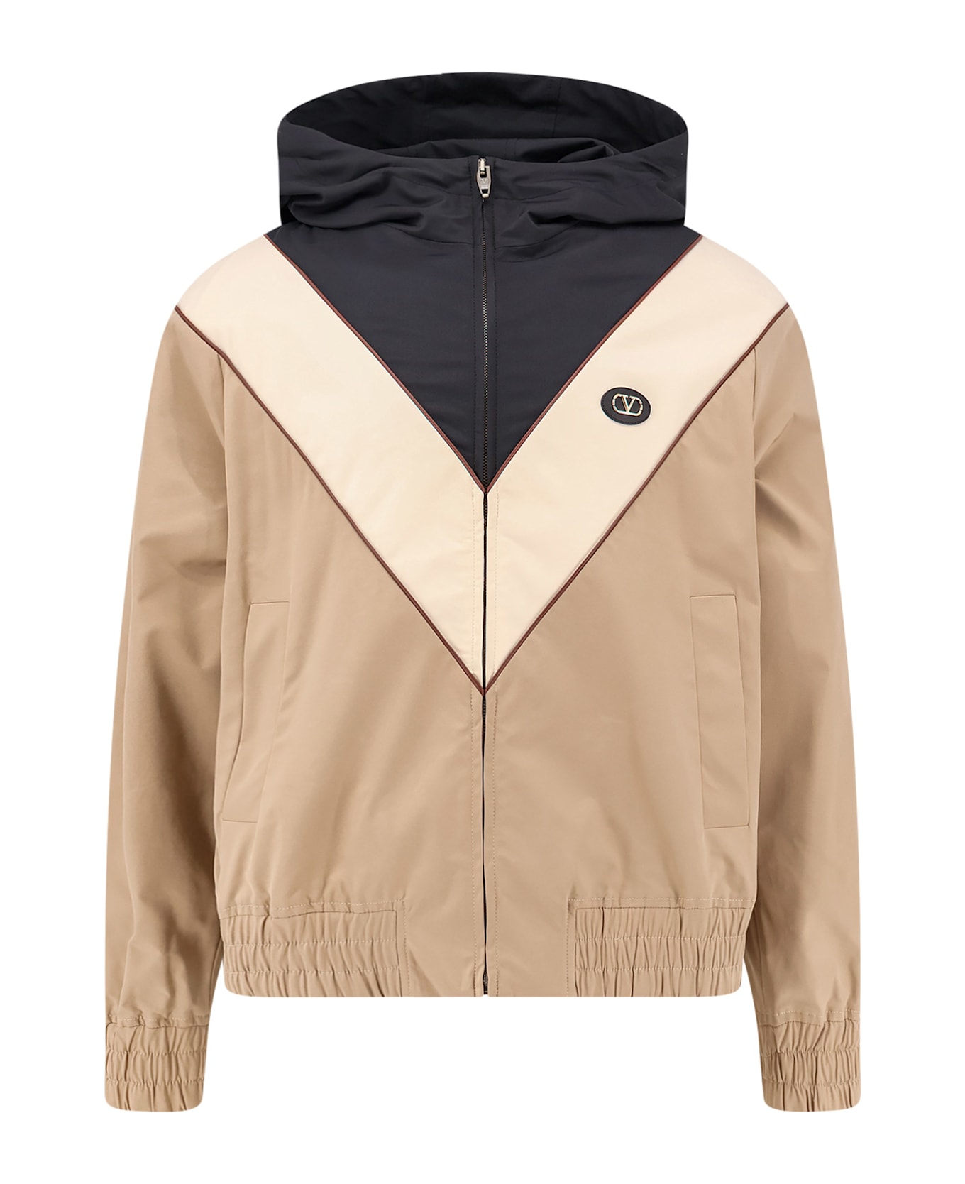 Zip closure Hood with adjustable drawstring Double front pocket Elastic bottom Made in Italy 64% polyester 36% elastomultiester Lining: 100% polyester SKU: 8V3CIQ12CKVC0U