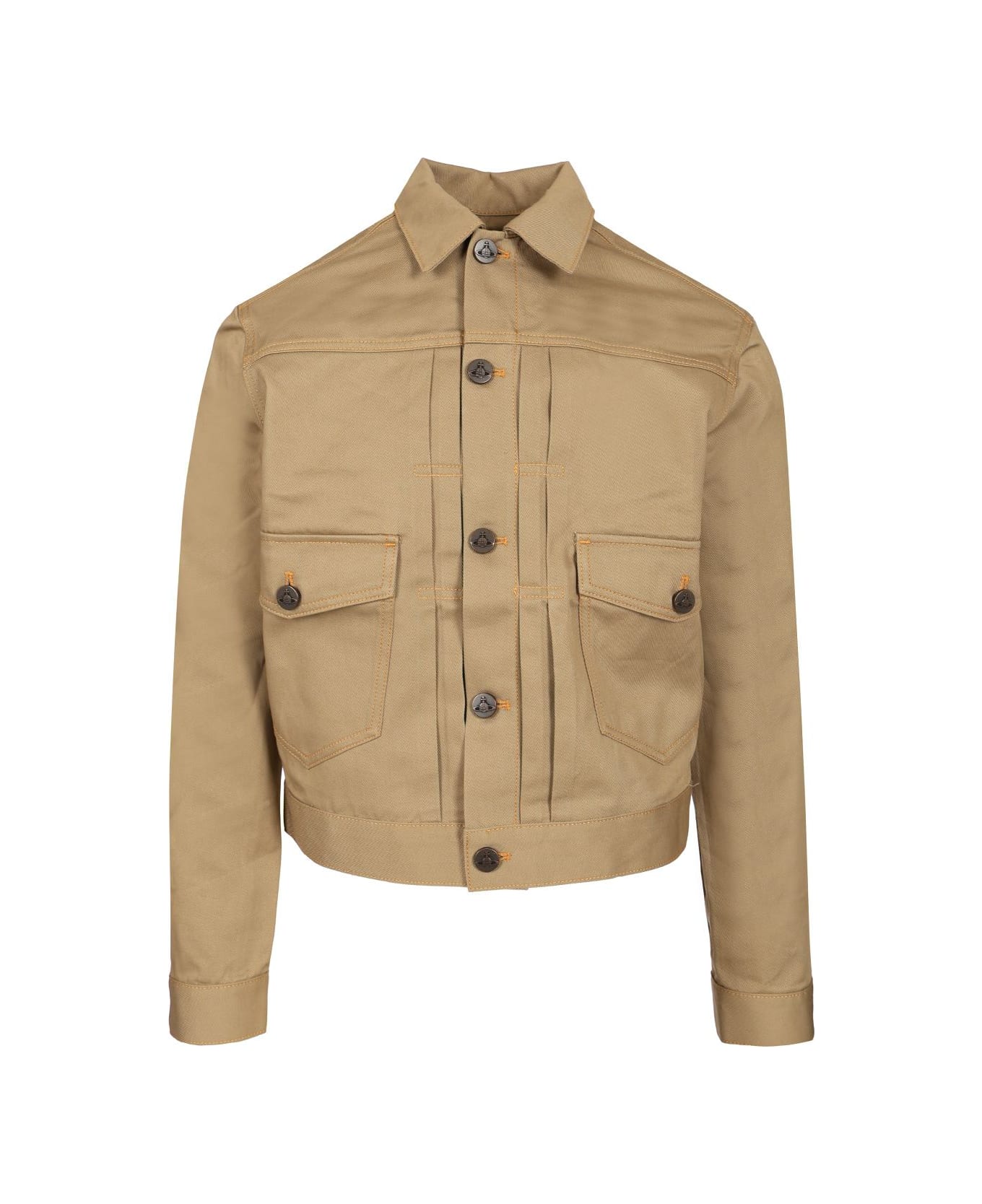 Denim jacket with contrast stitching in light brown. It features an embroidered Orb on the chest and is made of denim Composition: 100% cotton