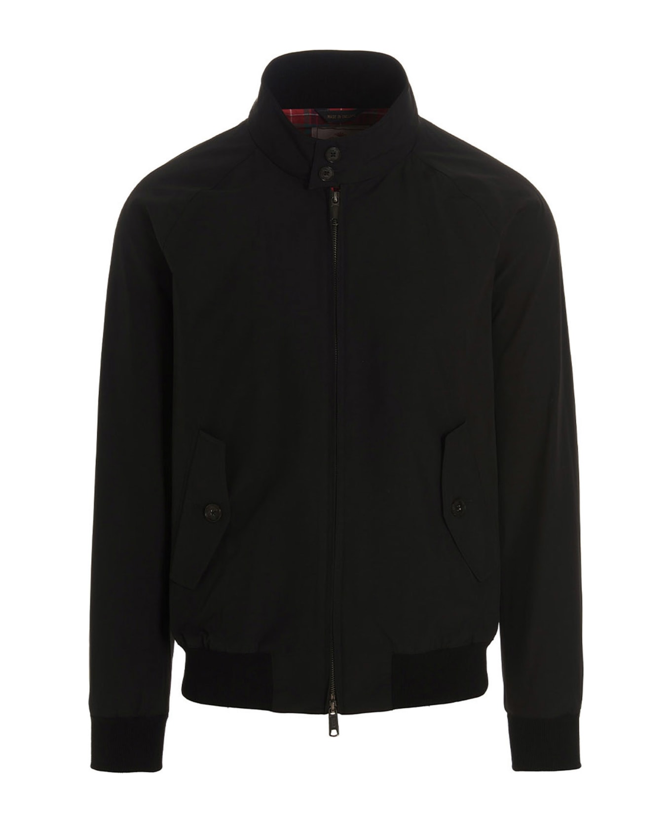G9' cotton blend nylon bomber jacket with zip, double button closure on the neck, front pockets, cuffs and knitted bottom hem.