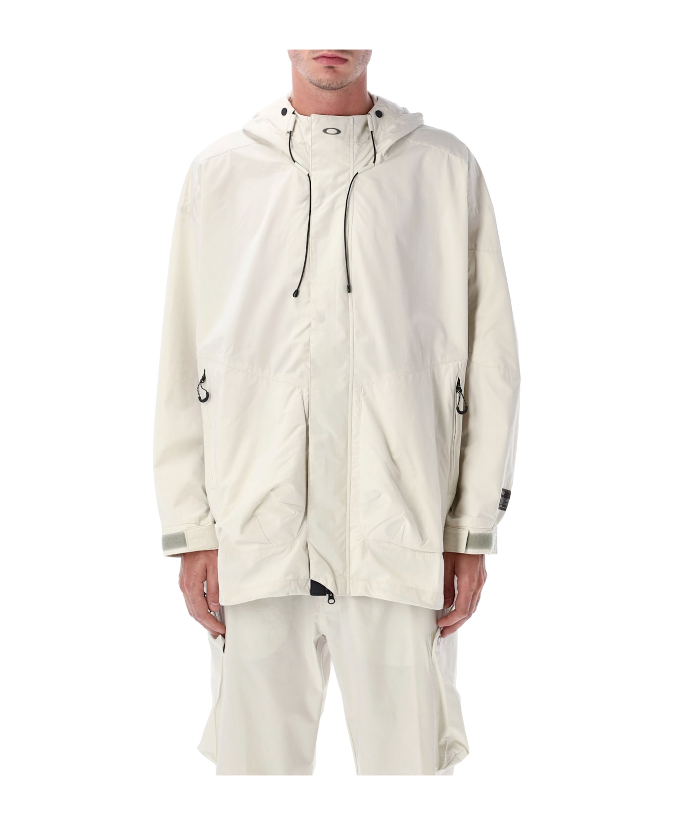 The Oakley Fgl Sector 5. 7 Hooded Jacket Is Designed To Withstand Extreme Weather Conditions While Ensuring Comfort And Functionality. Crafted From An Advanced Hybrid Performance Fabric, It Combines Durability, Water-repellent Treatment, And A Unique Powder-touch Finish. Large Utility Pockets Provide Essential Storage, While The Regular Fit With An Adjustable Drawcord At Hem Ensures A Customizable Silhouette. C Ompleted With The Woven Fgl Logo Patch And Oakley Ellipse Branding. Hybrid Technical Fabric, Durable And Water-repellent Protective Hood Regular Fit With Adjustable Hem Drawcord Spacious Multi-functional Pockets Woven Fgl Logo Patch At Cuff Oakley Ellipse Branding Detail At Front Andrea Is 1,90 M And Wears Size L