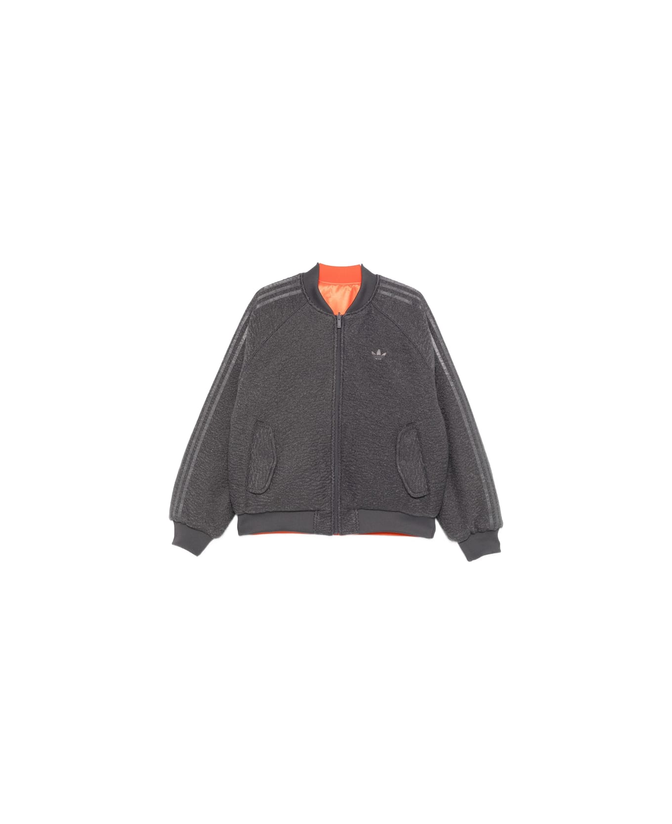 grey three-stripe detail zip fastening ribbed hem ribbed cuffs flap pockets