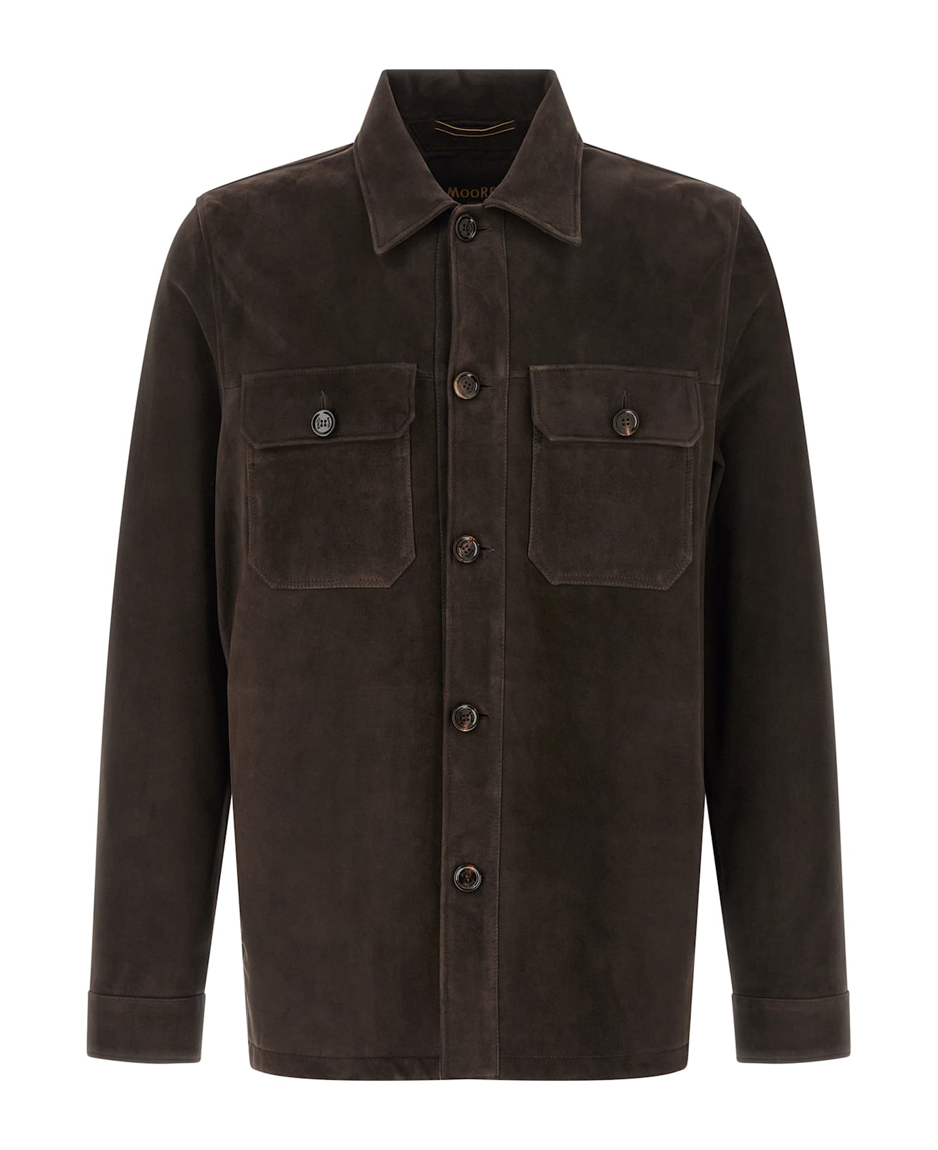Suede 'Klaus' overshirt with front button closure, pockets, long cuffed sleeves. Composition: 100% lamb leather (Ovis aries)