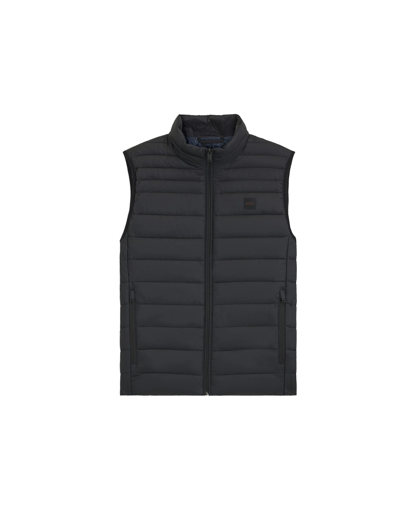 black zip fastening logo patch sleeveless stand collar side zip pockets