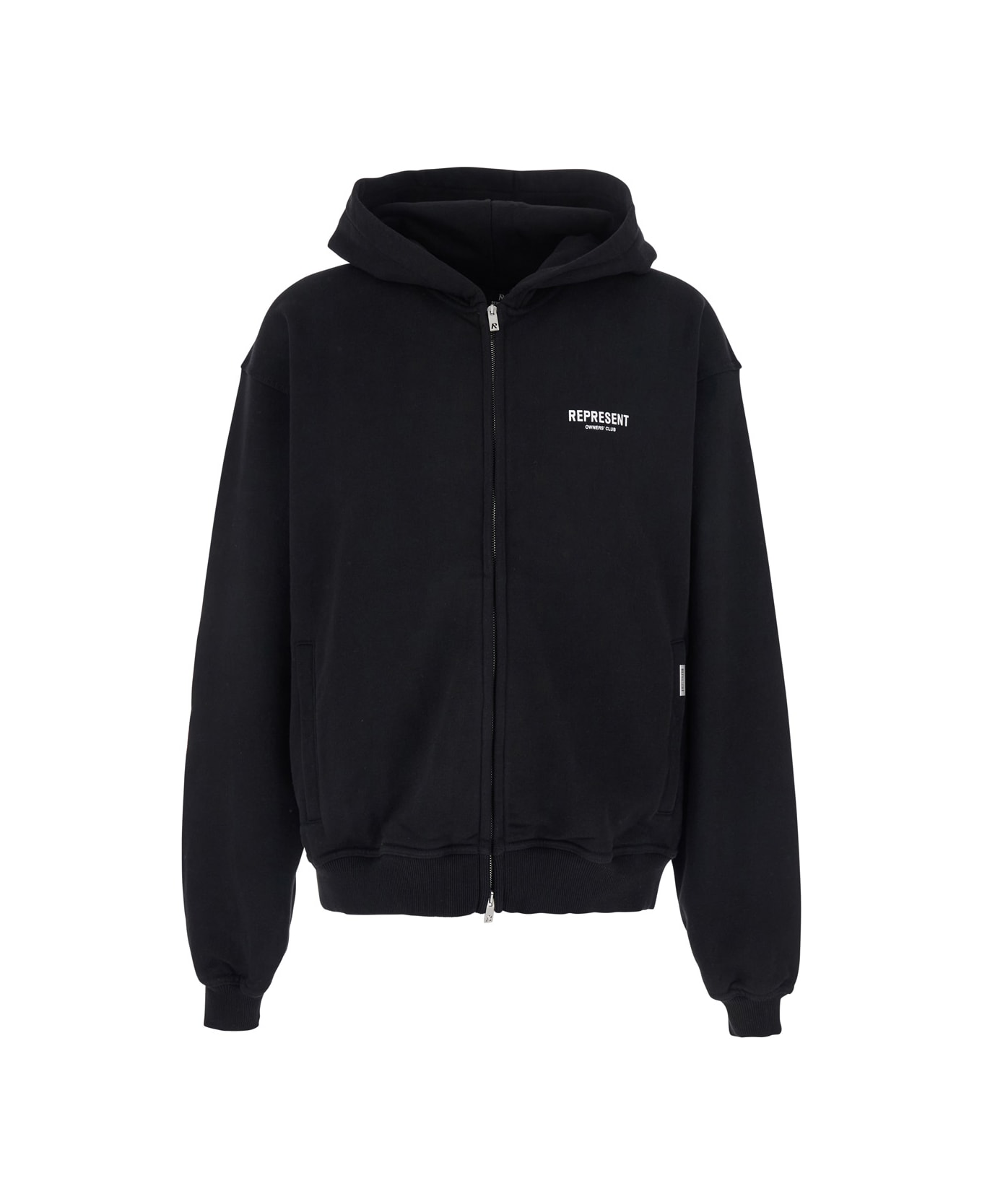 Black Zip-up Sweatshirt With Logo On The Front And Back In Cotton Man