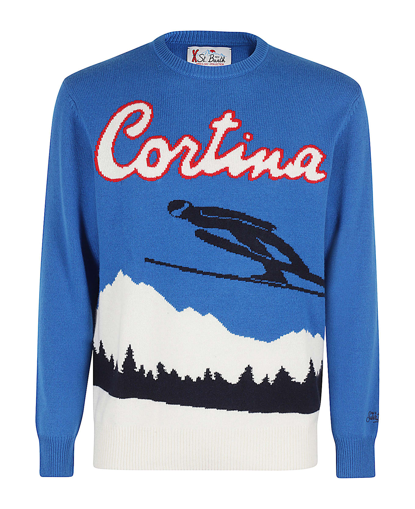 Heron C sweater - MC2 Saint Barth - Electric blue color - Stretch wool fabric - Crew neck - Long sleeve - Ribbed trim - Cortina embroidery on front - Regular fit
