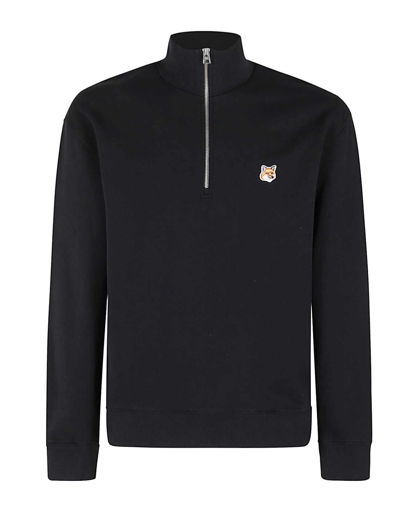 Fox Head Patch Half Zip Sweatshirt - Maison Kitsuné - black color - high collar with half zipper - long sleeves - logo applied on chest - elastic ribbed trim