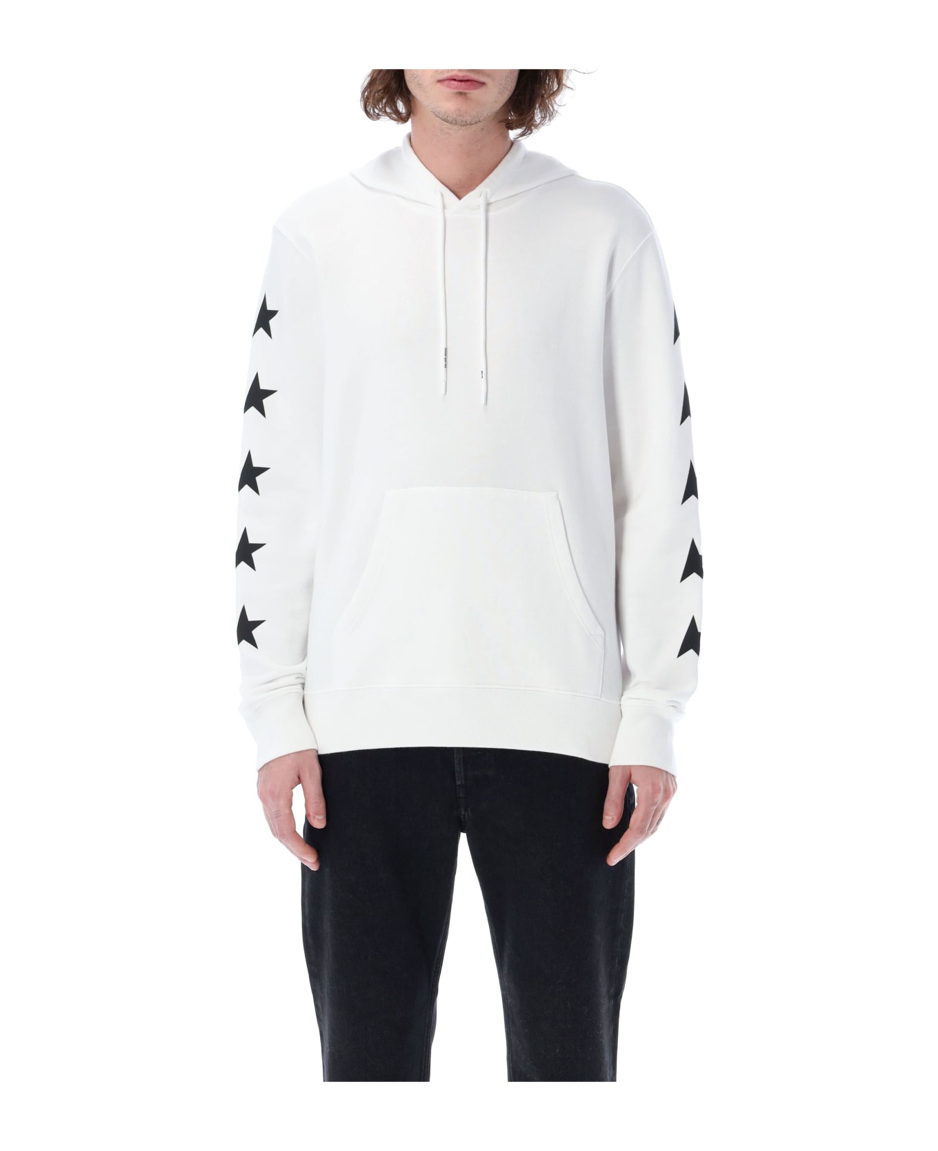 Multi Star Hoodie By Golden Goose. Featuring: Cotton Jersey Hood With Drawstring Long Sleeves Ribbed Cuffs And Hem Contrasting White Stars On The Sleeves White Maxi Star On The Back Kangaroo Pocket Regular Fit Model Is 1,90 M And Wears Size L