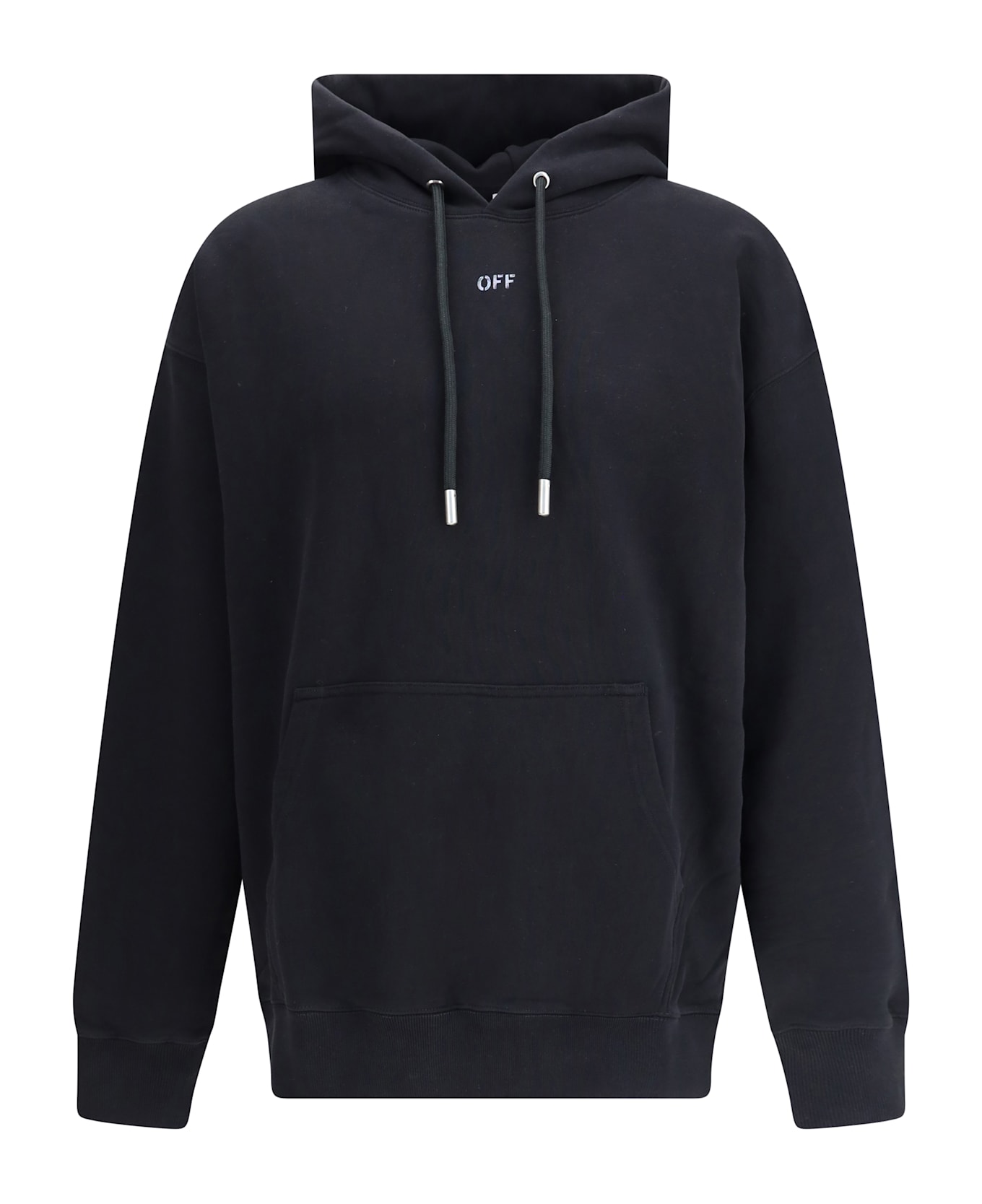 The stencil arrow skate hoodie by off-white embodies a bold urban aesthetic with contemporary edge. crafted from premium cotton, it features the brand s iconic stencil arrow graphic at the back, a hallmark of its visual language. a drawstring hood with metal tips, kangaroo pocket, and ribbed cuffs and hem ensure both comfort and structure. finished with a subtle chest logo, this hoodie balances functionality with off-white s forward-thinking streetwear identity.