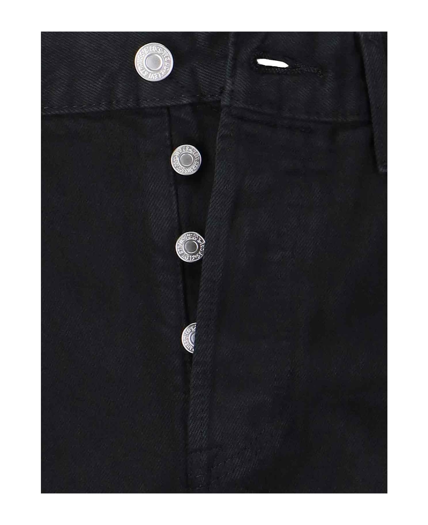 Levi's Strauss '501' Jeans, black cotton, belt loops, button fastening, five pocket design, back logo label, straight leg, straight hem.