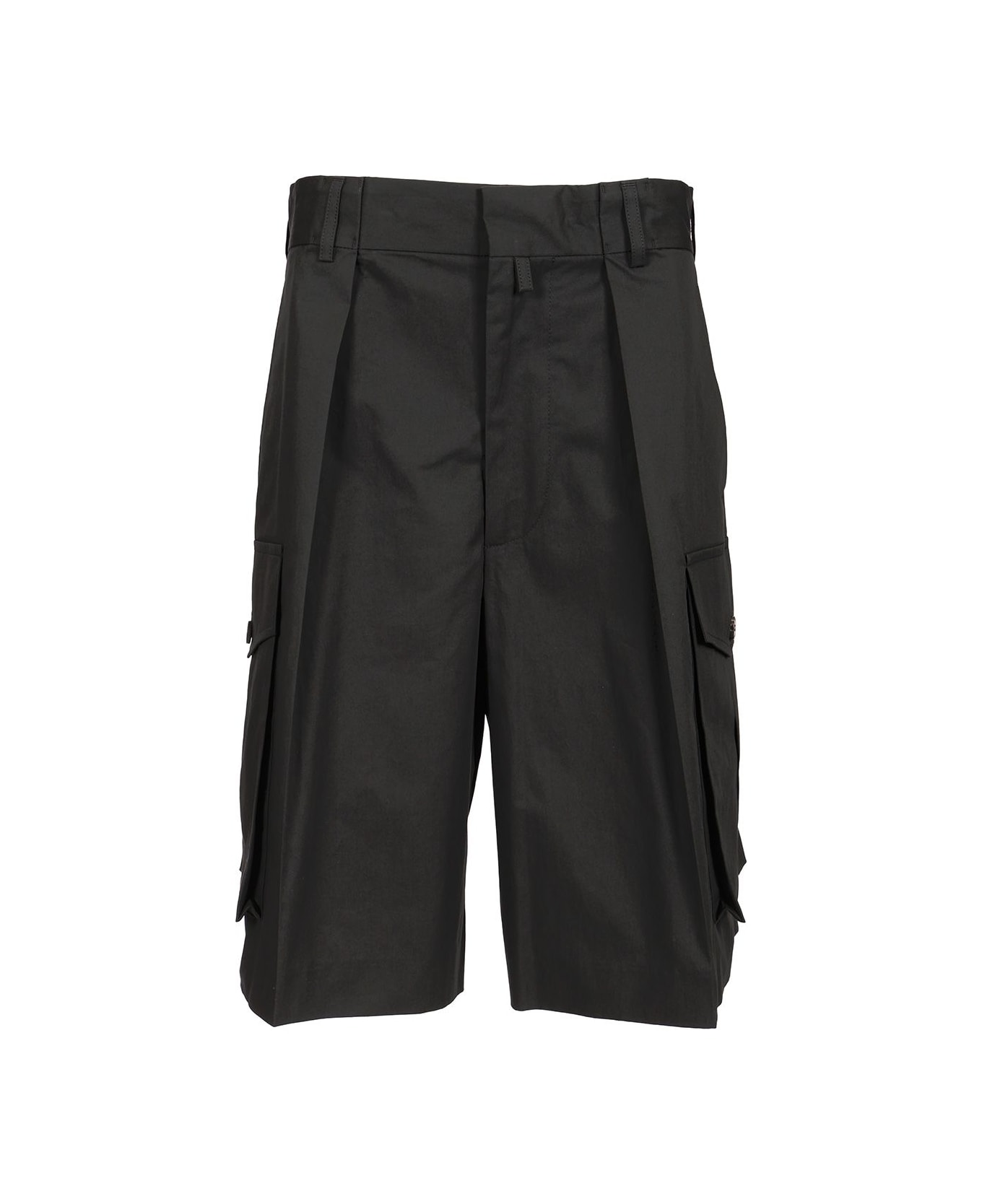 Cotton cargo shorts with large patch pockets on the legs and button closure