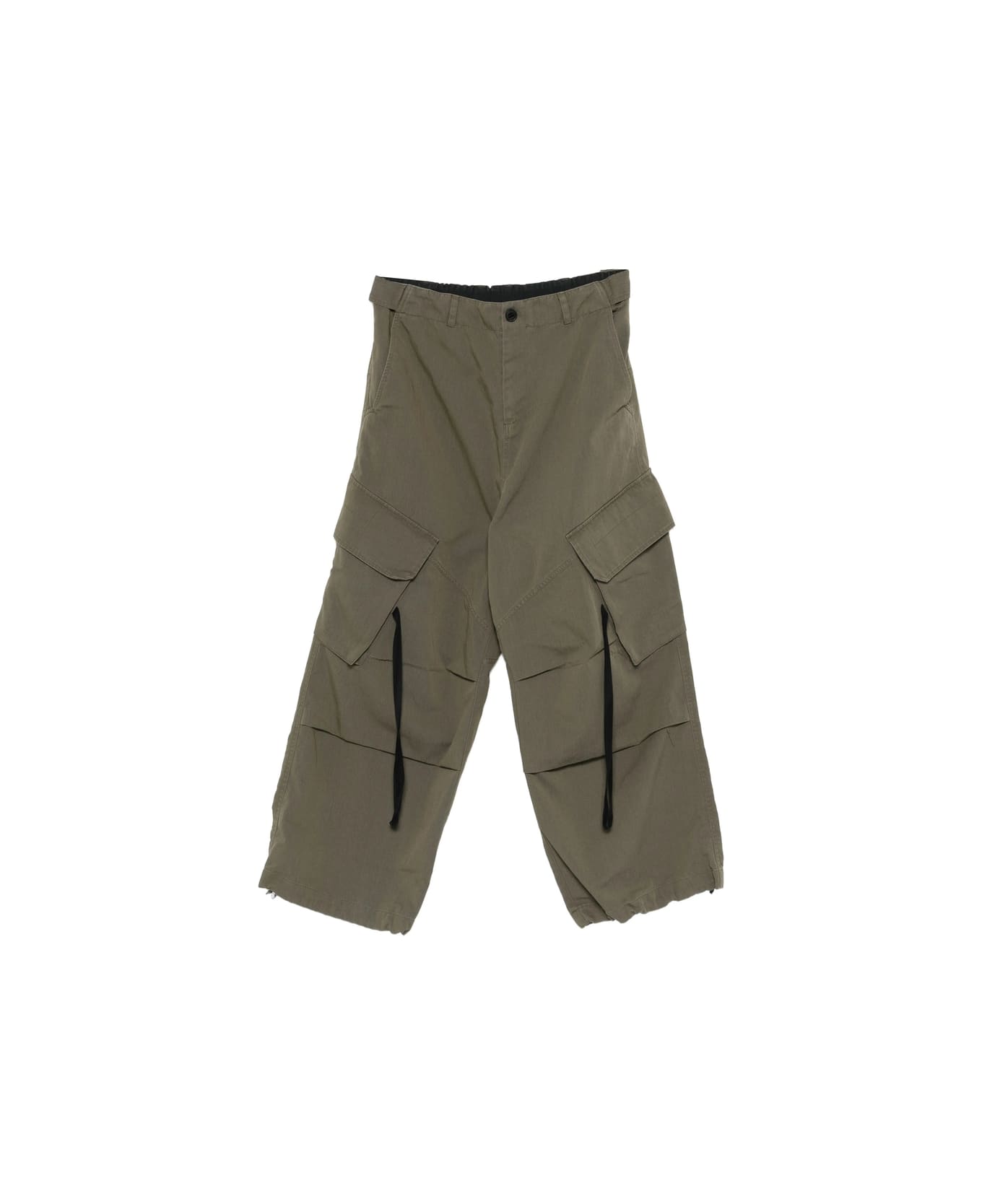 green multiple cargo pockets front zip and button fastening cuffed hems