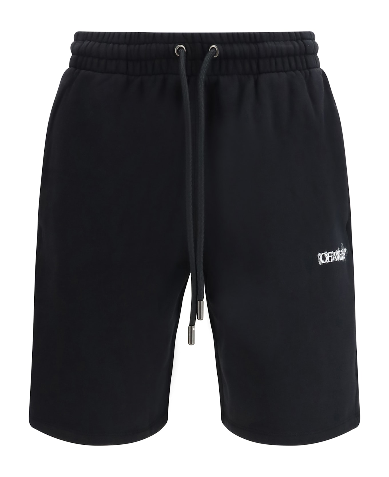 The heraldic arrow bermuda shorts by off-white deliver a bold graphic approach to casual wear. crafted from cotton, they feature an elasticized waistband with drawstring for comfort and ease. two side pockets and a rear pocket provide functional structure, while contrasting lettering at the front introduces the brand identity. the heraldic arrow print on the back stands as the key visual element. a style designed to balance everyday comfort with strong urban expression.