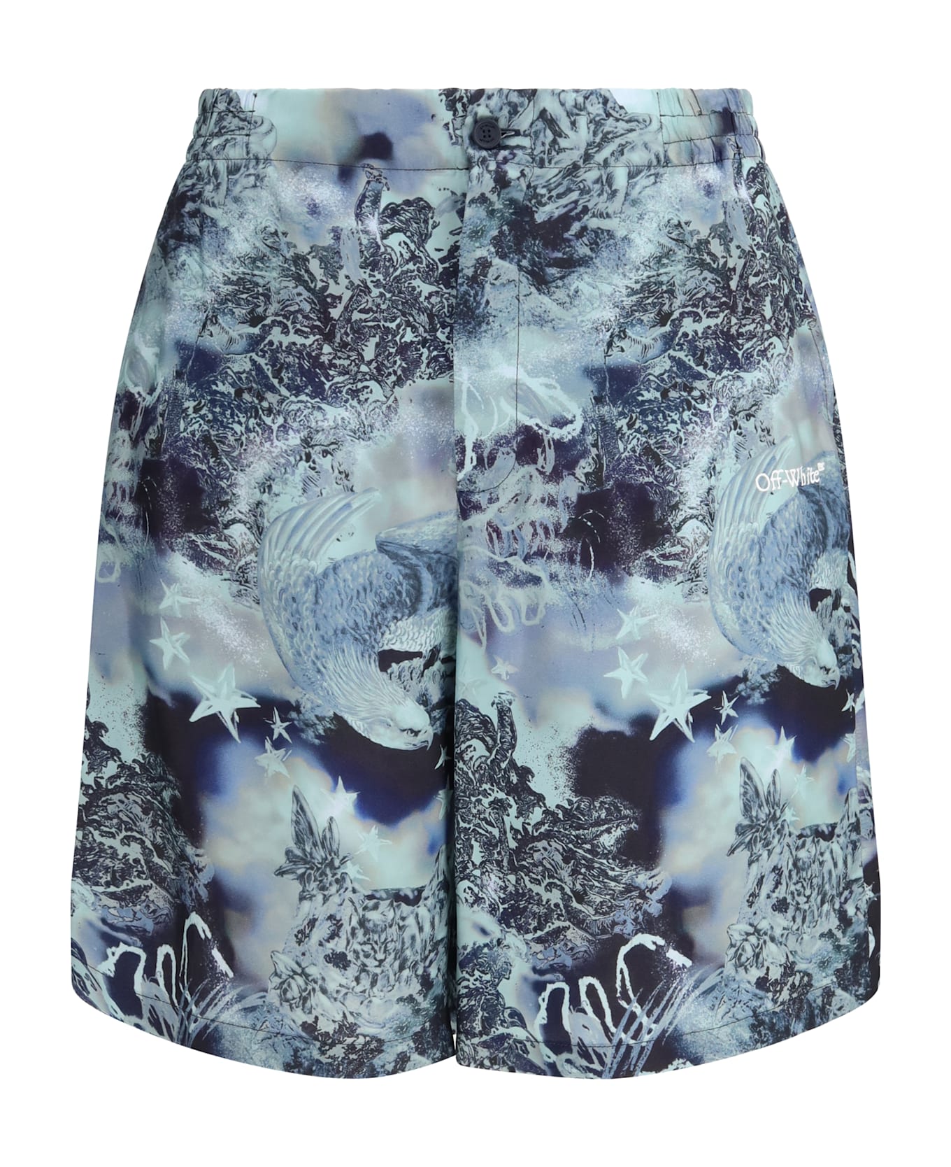 The printed bowling shorts by off-white are crafted from lightweight viscose and feature an abstract print inspired by the sea. the relaxed silhouette and soft drape ensure comfort and fluidity, while the smooth texture and multicolor design give the garment a playful and refined aesthetic, ideal for the warm season.