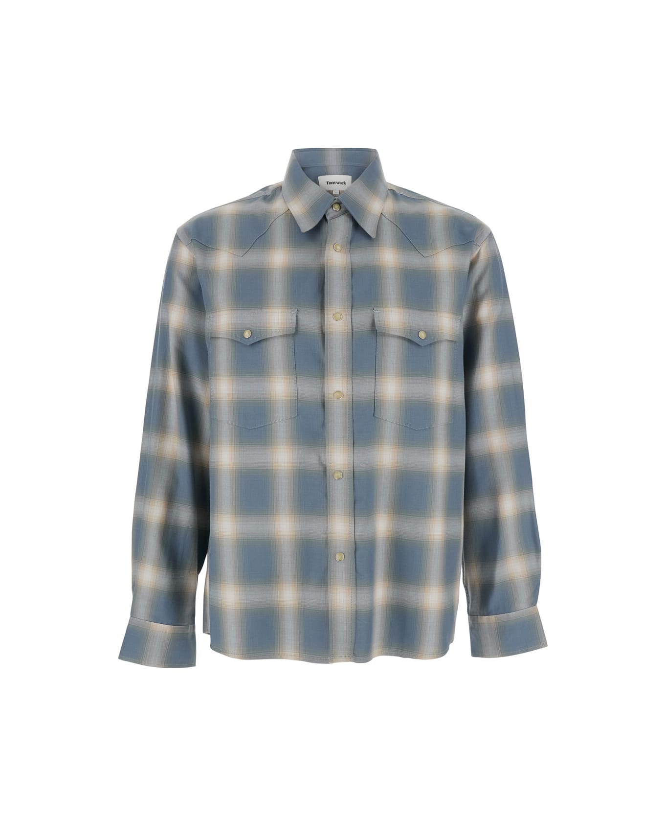 Light Blue Shirt With Classic Collar And All-over Check Motif In Cotton Blend Man