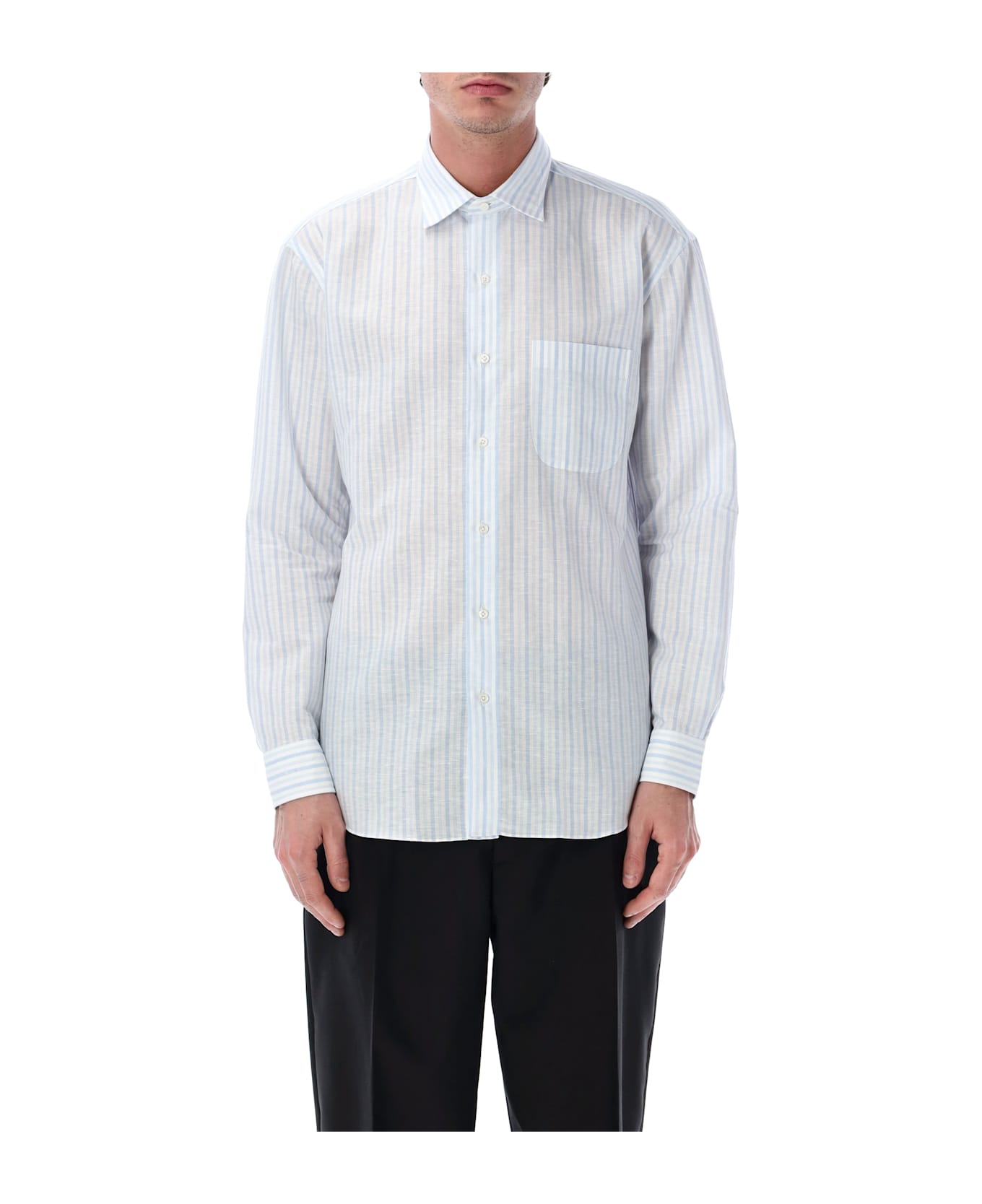 The Salvatore Piccolo Alberto Shirt Combines A Soft Cotton-blend Fabric With A Classic Stripe Pattern For Timeless Style. Featuring A Classic Collar, Chest Patch Pocket, Long Sleeves With Buttoned Cuffs, And A Curved Hemline, It Offers A Relaxed Yet Refined Fit. Ideal For Casual Or Office Wear, It Elevates Everyday Outfits With Understated Elegance. Classic Fit
