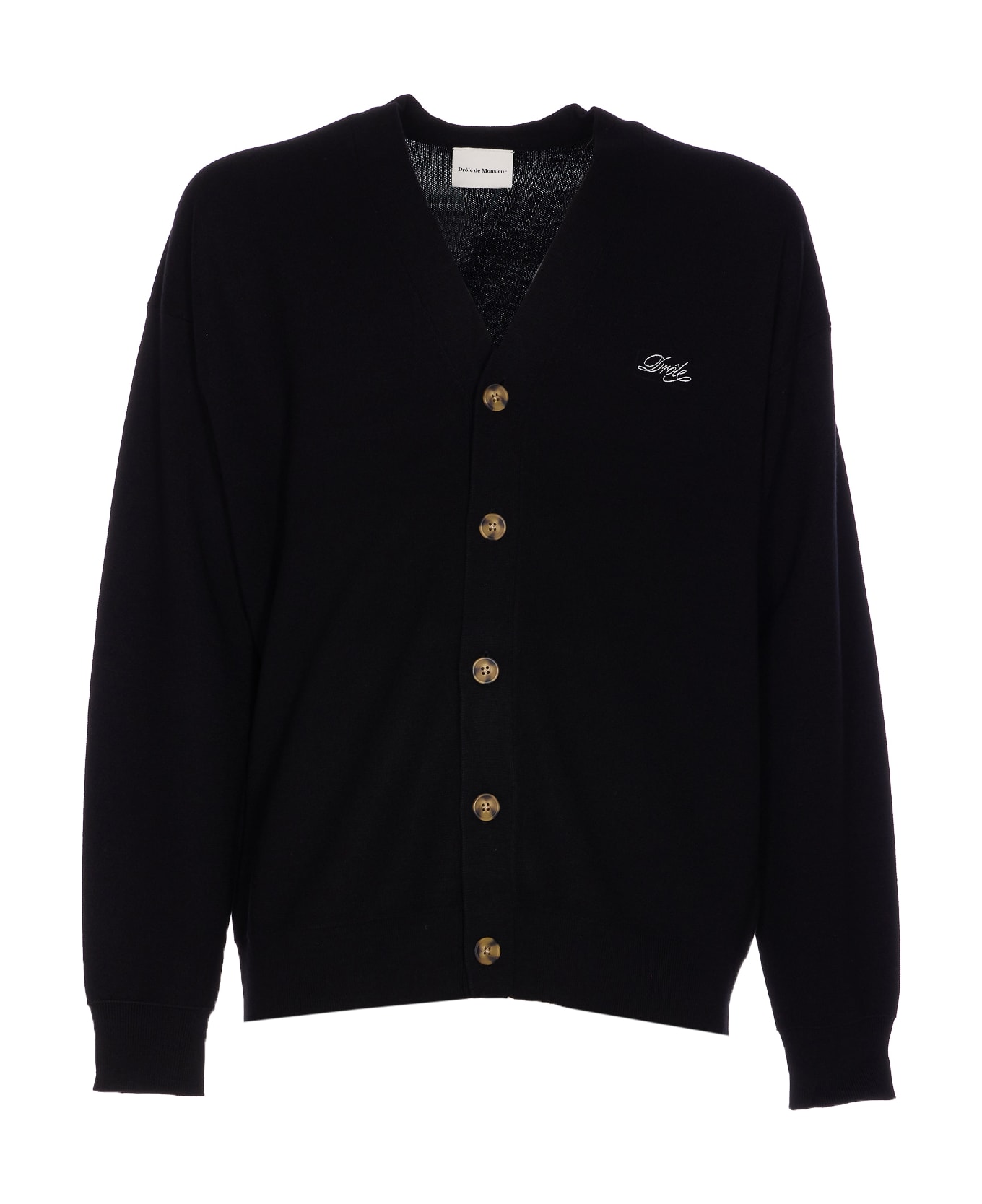 Drole De Monsieur black cardigan with buttons closure, V-neck, long sleeves, buttons closure, embroidered logo on the front Composition: 100% Merino Wool
