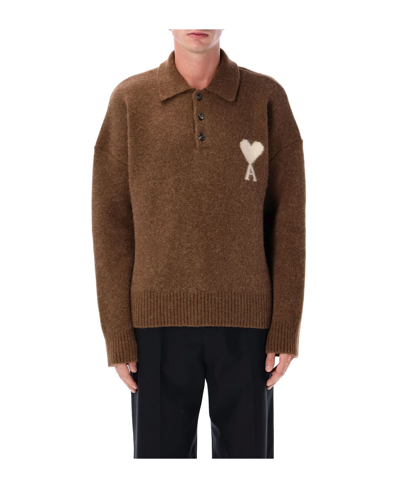 Ami Paris Wool Polo Sweater With Ami De Coeur Logo