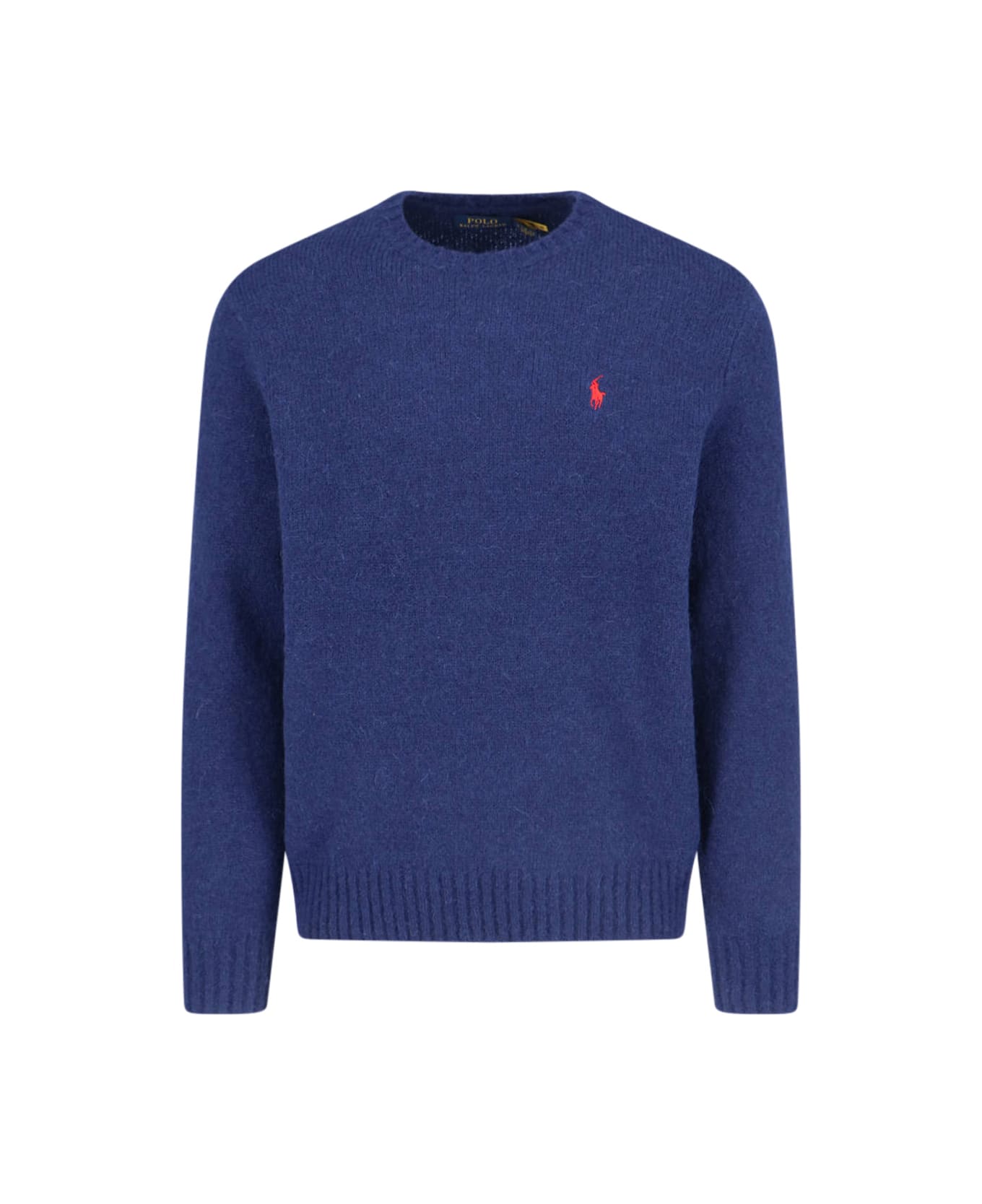 Polo Ralph Lauren logo sweater in navy blue wool and alpaca blend with crewneck, red logo embroidery on the chest, ribbed trim, straight hem. Composition: 42% Wool, 38% Alpaca, 20% Nylon