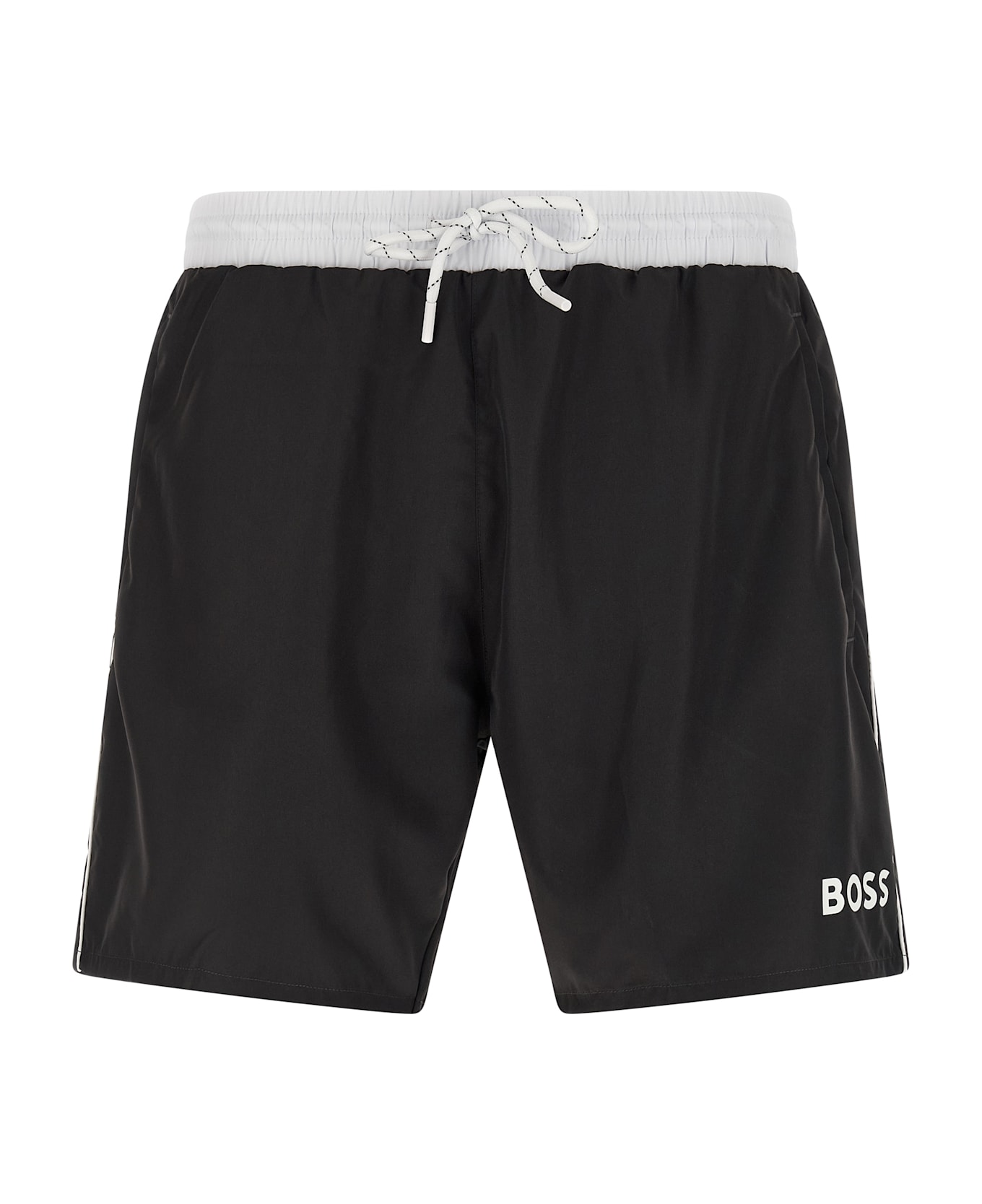 'Starfish' swimsuit in natural quick-drying fabric with front logo print, drawstring elastic waistband, pockets, inner mesh briefs.