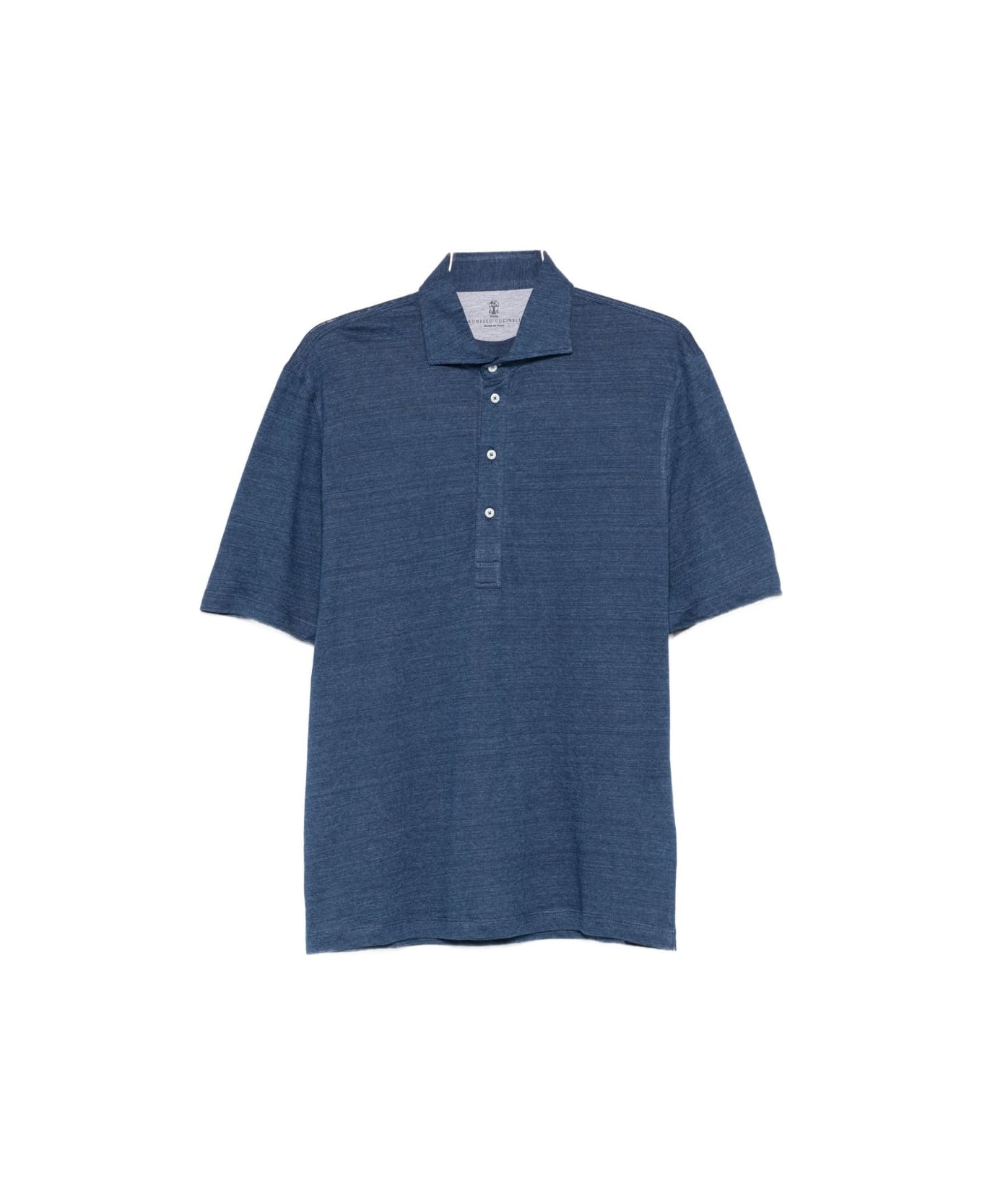blue button placket short sleeves point collar Composition: 74% Linen, 26% Cotton